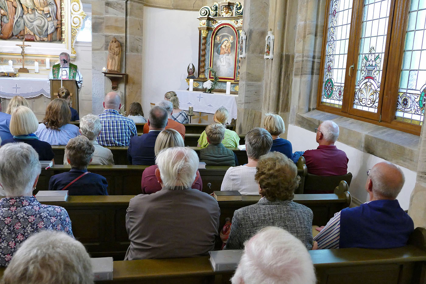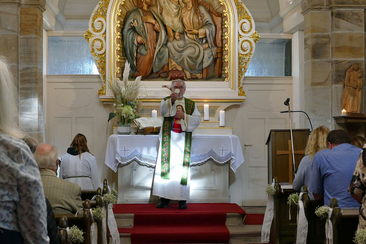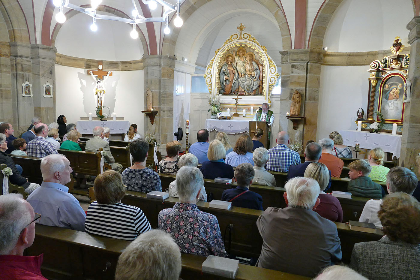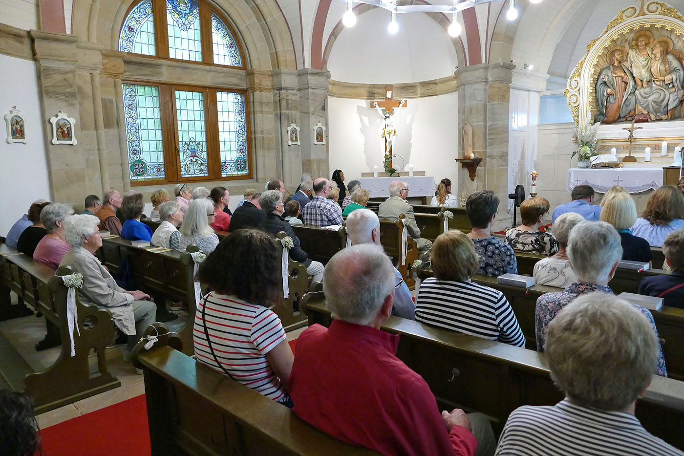 In der festlich dekorierten Kapelle zelebrierte Stadtpfarrer Geistlicher Rat W. Johannes Kowal den Festgottesdienst. Zu dieser besonderen Heiligen Messe waren viele Gläubige unserer Kirchengemeinde zum Weingarten gekommen.
