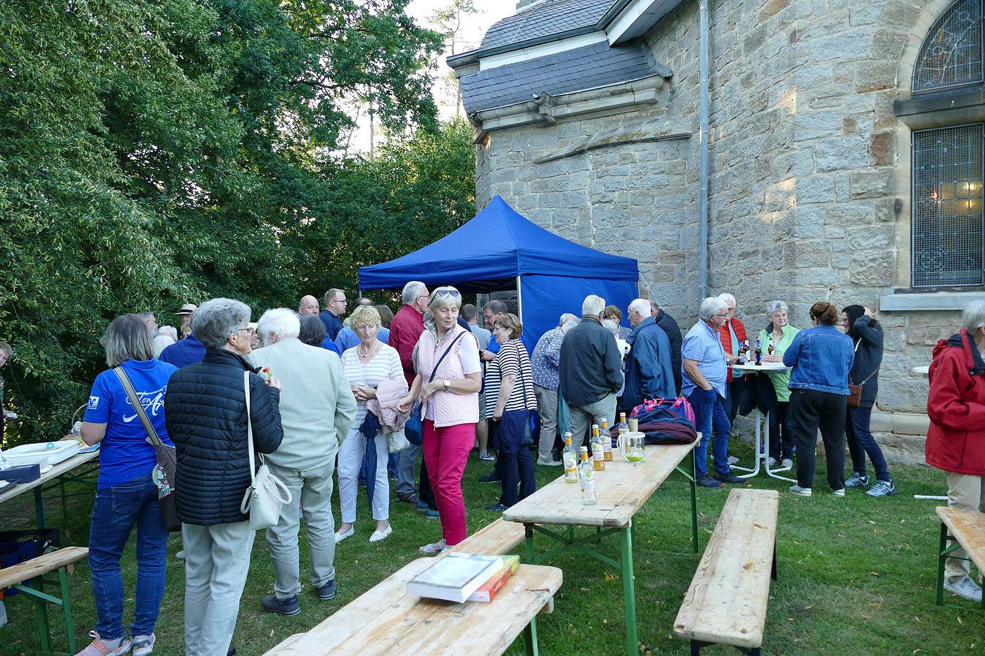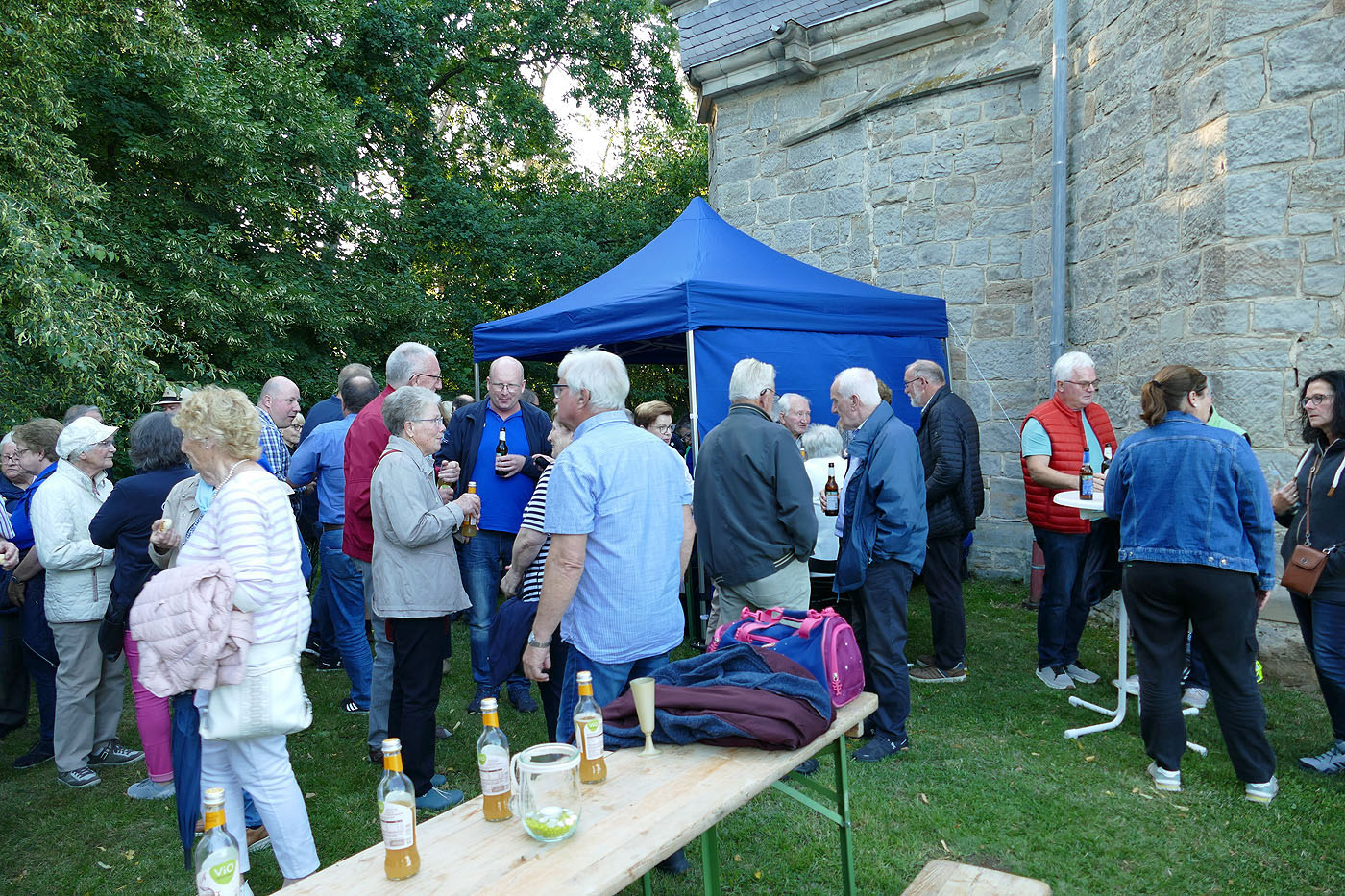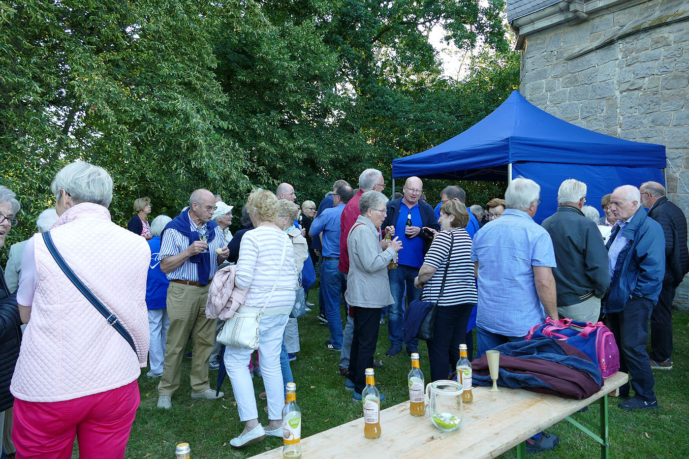 Nach der Heiligen Messe verweilte man noch einige Zeit vor der Kapelle, wo man Getränke und einen kleinen Imbiss zu sich nehmen konnte.