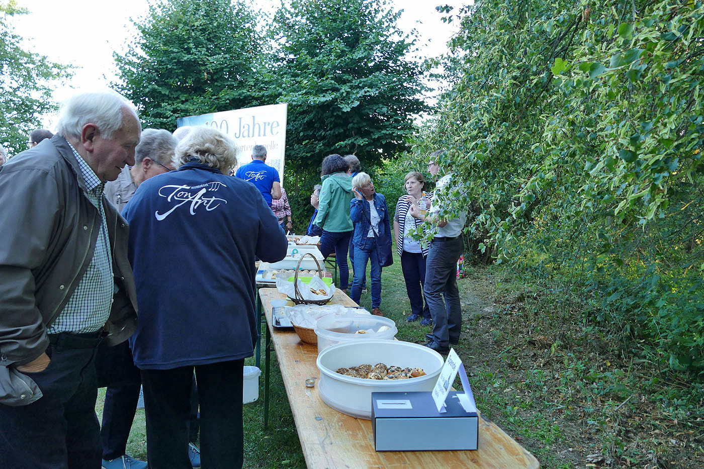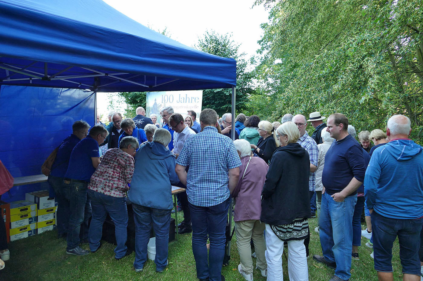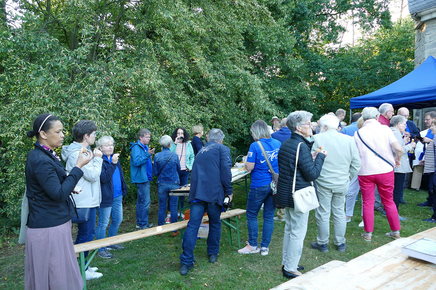 Nach der Heiligen Messe verweilte man noch einige Zeit vor der Kapelle, wo man Getränke und einen kleinen Imbiss zu sich nehmen konnte.