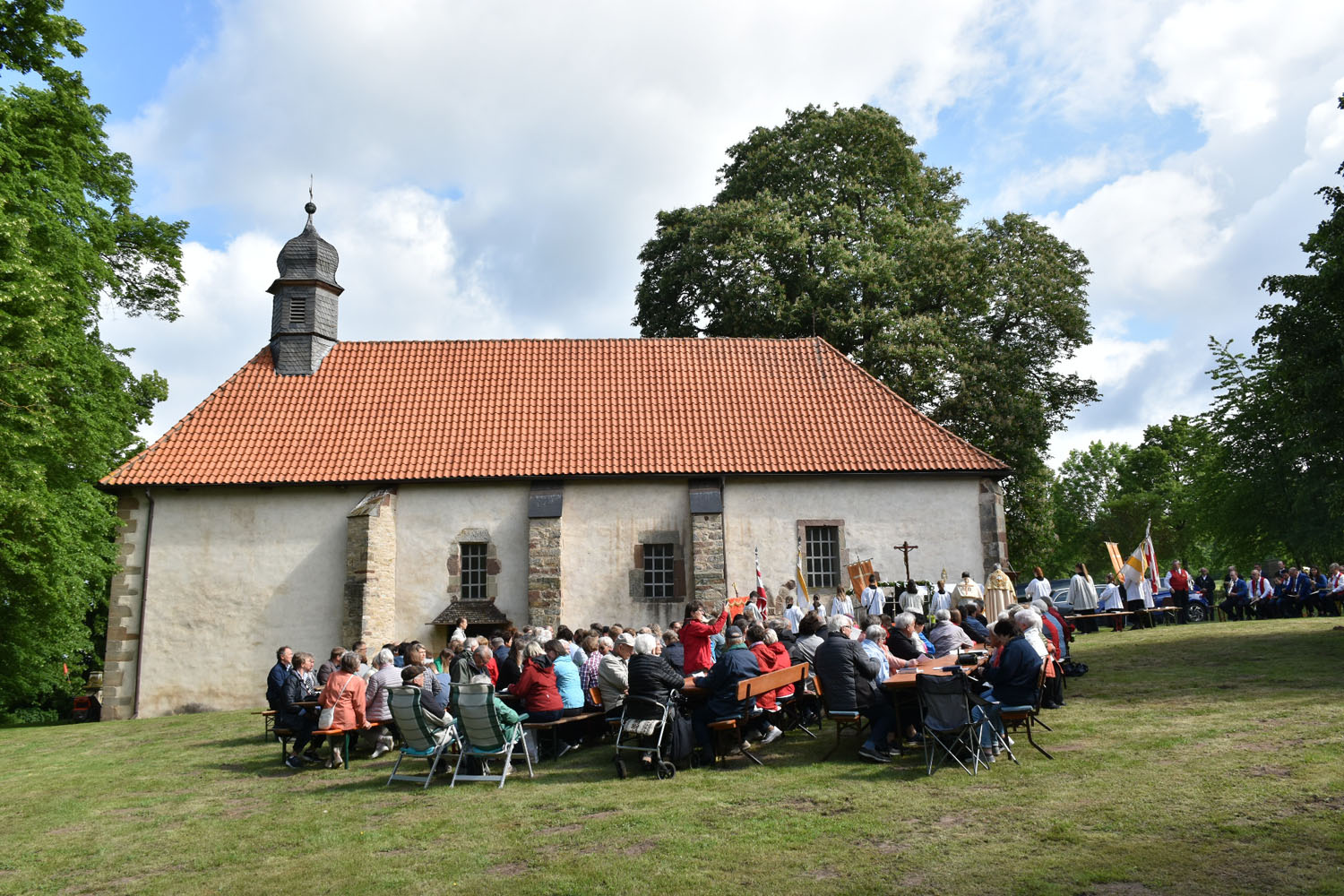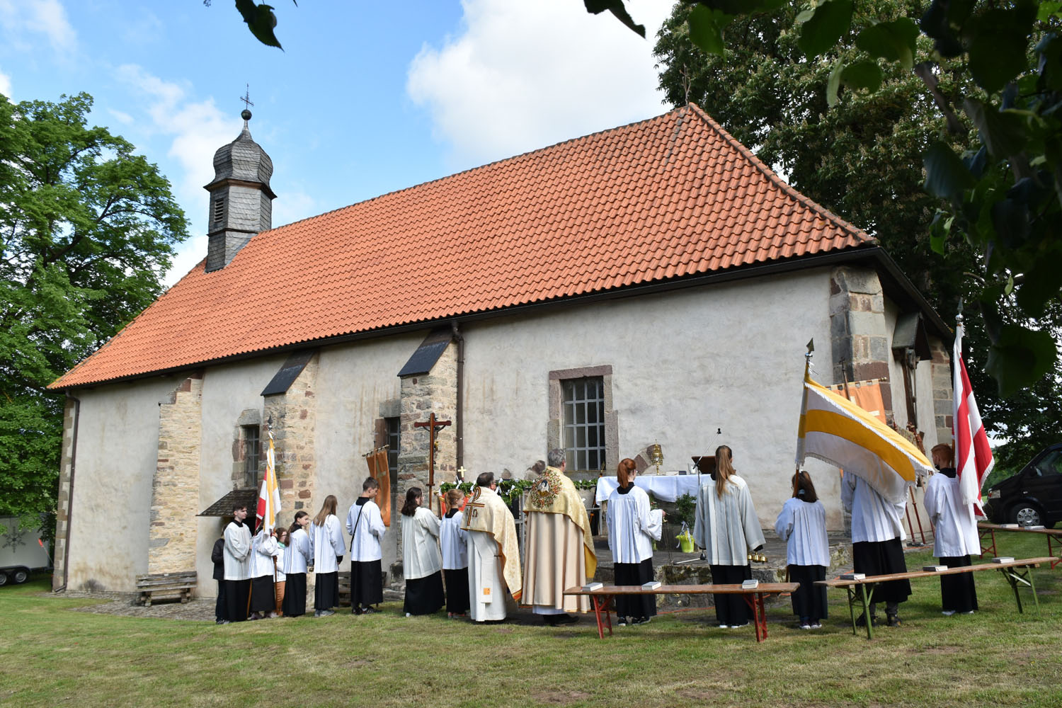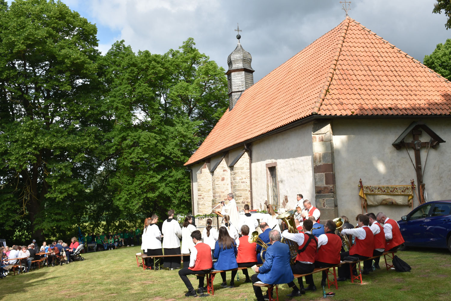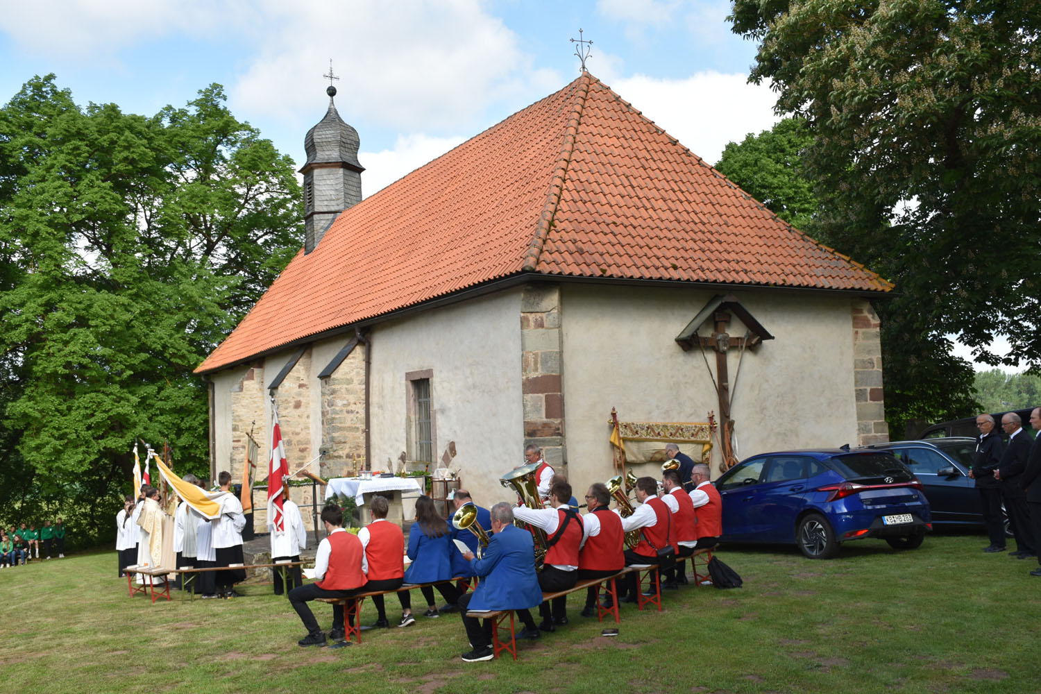 An Christi Himmelfahrt, 26. Mai 2022, führte zum ersten Mal nach der Corona-Unterbrechung die Prozession wieder zur Wittmar Kapelle. Dort warteten bereits viele Besucher, sodass gegen 10 Uhr der Festgottesdienst begann. Zum ersten Mal übernahm dabei Alexander von Rüden die Aufgaben des Diakons in der Heiligen Messe und hielt die Predigt. Im Anschluss an den Gottesdienst gratulierte Bärbel Armbrecht für die Gremien, Pfarrer Martin Fischer für die Gemeinde und der Kindergarten überraschte Alexander von Rüden mit einem Liedvortrag.
