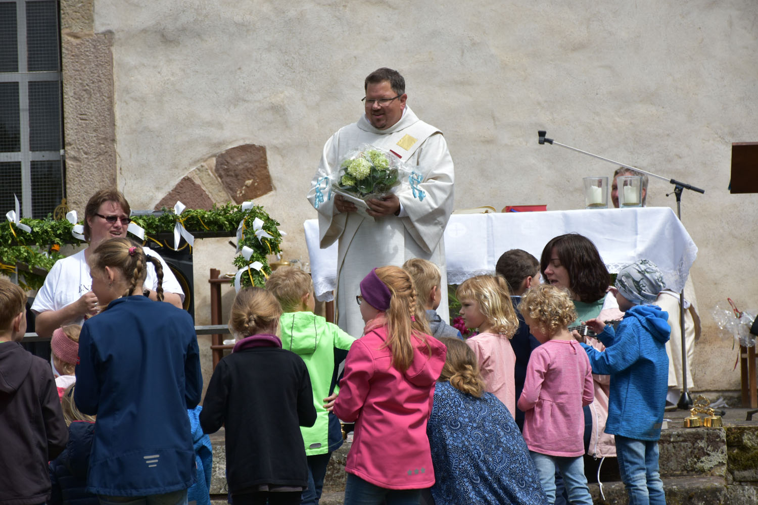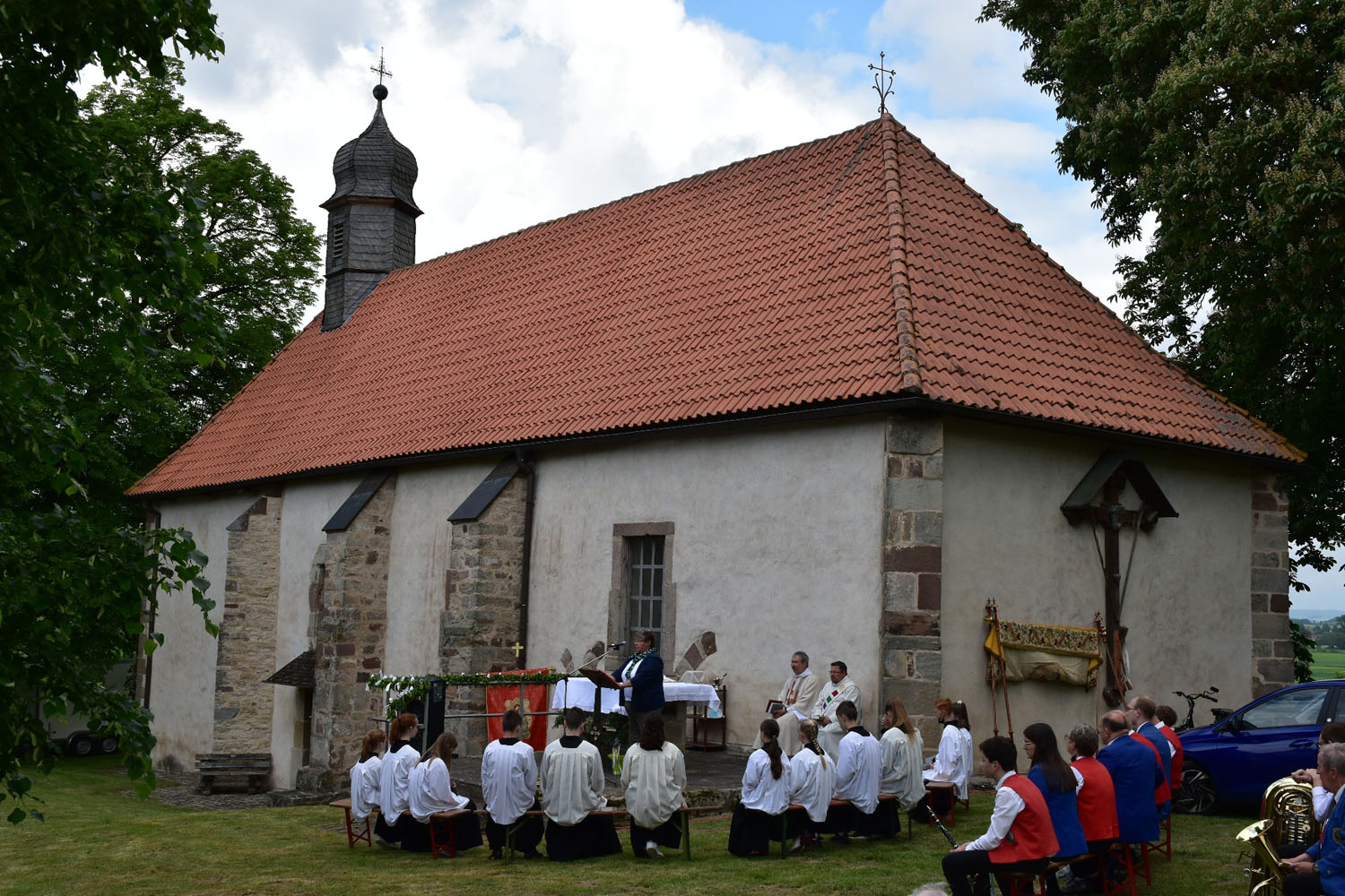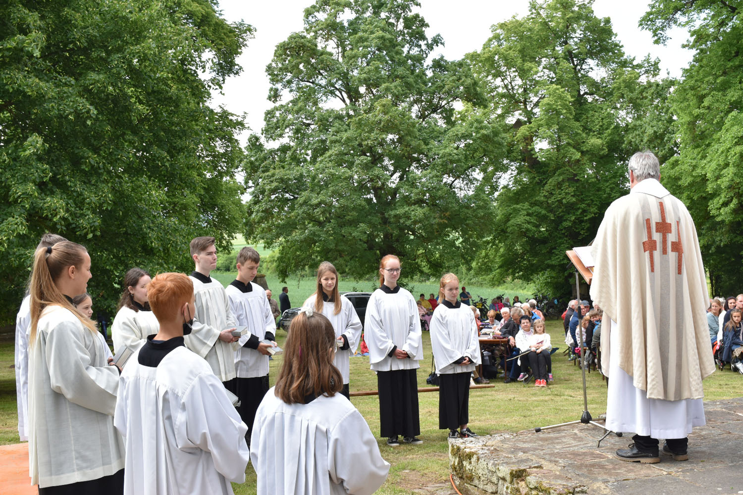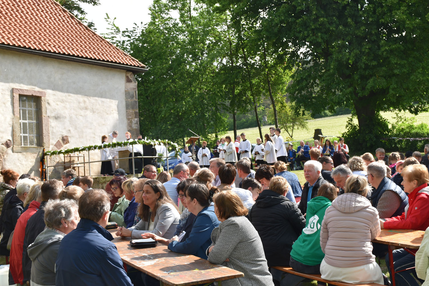 An Christi Himmelfahrt, 26. Mai 2022, führte zum ersten Mal nach der Corona-Unterbrechung die Prozession wieder zur Wittmar Kapelle. Dort warteten bereits viele Besucher, sodass gegen 10 Uhr der Festgottesdienst begann. Zum ersten Mal übernahm dabei Alexander von Rüden die Aufgaben des Diakons in der Heiligen Messe und hielt die Predigt. Im Anschluss an den Gottesdienst gratulierte Bärbel Armbrecht für die Gremien, Pfarrer Martin Fischer für die Gemeinde und der Kindergarten überraschte Alexander von Rüden mit einem Liedvortrag.