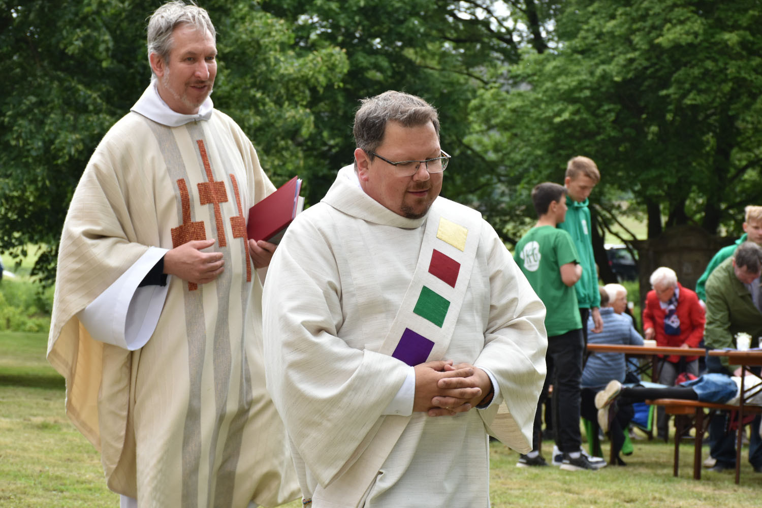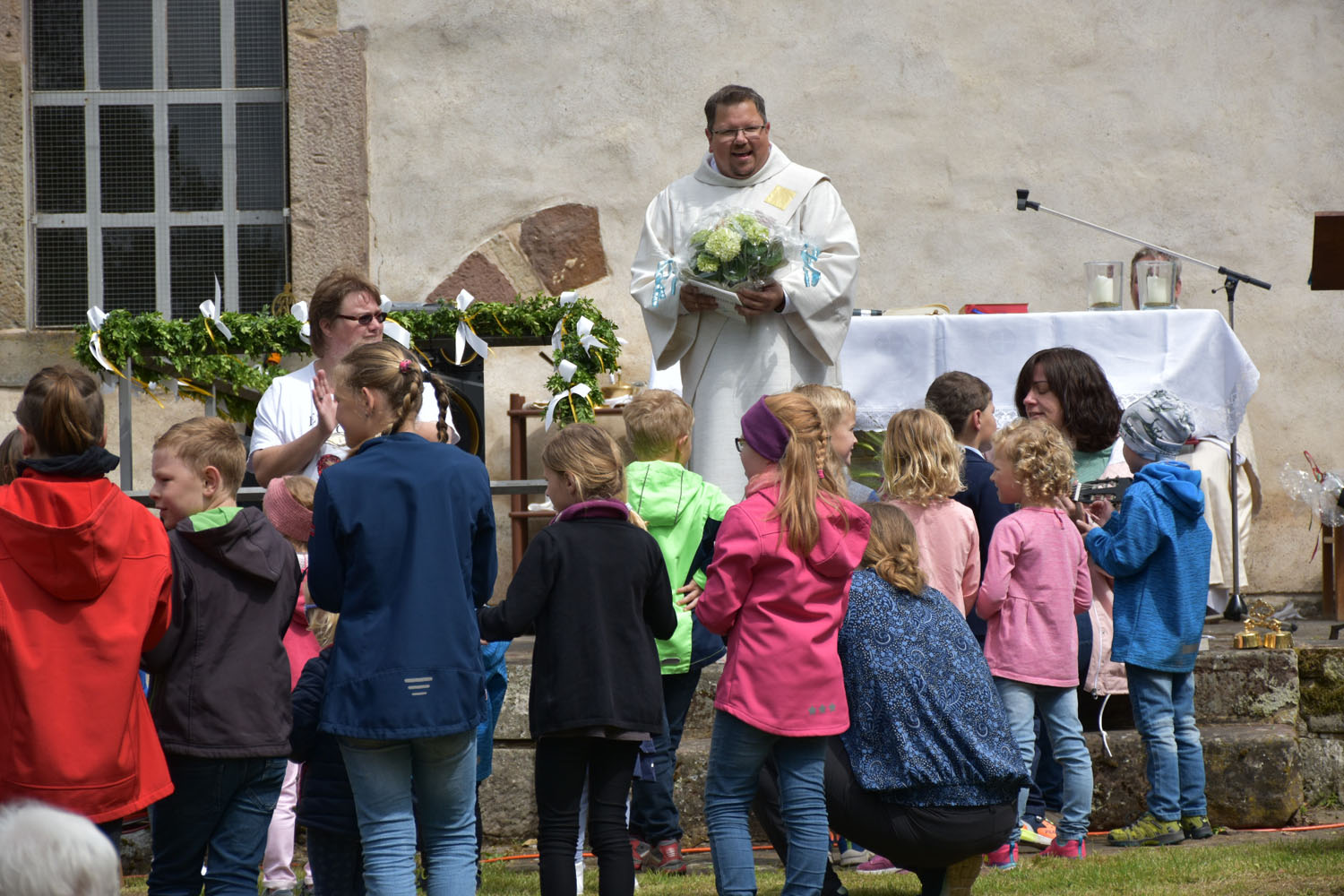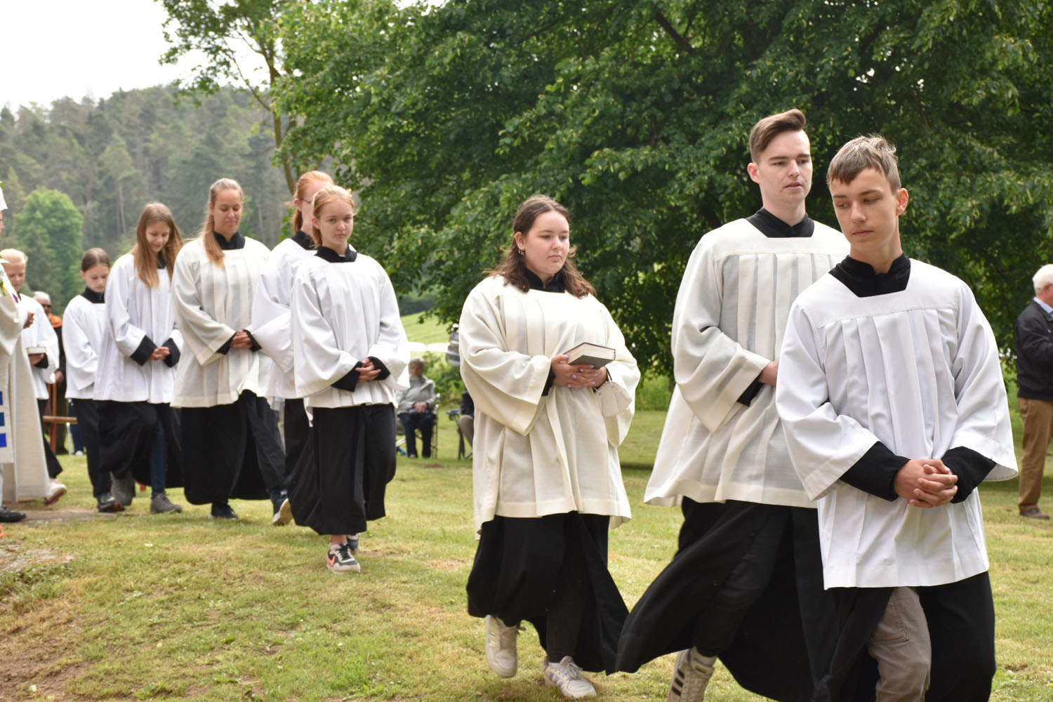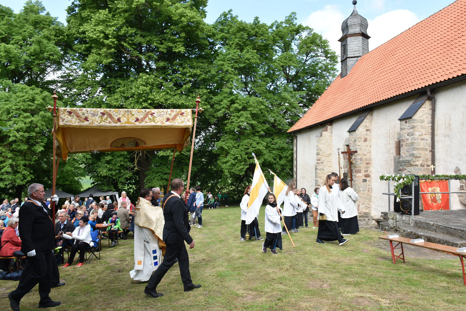 An Christi Himmelfahrt, 26. Mai 2022, führte zum ersten Mal nach der Corona-Unterbrechung die Prozession wieder zur Wittmar Kapelle. Dort warteten bereits viele Besucher, sodass gegen 10 Uhr der Festgottesdienst begann. Zum ersten Mal übernahm dabei Alexander von Rüden die Aufgaben des Diakons in der Heiligen Messe und hielt die Predigt. Im Anschluss an den Gottesdienst gratulierte Bärbel Armbrecht für die Gremien, Pfarrer Martin Fischer für die Gemeinde und der Kindergarten überraschte Alexander von Rüden mit einem Liedvortrag.