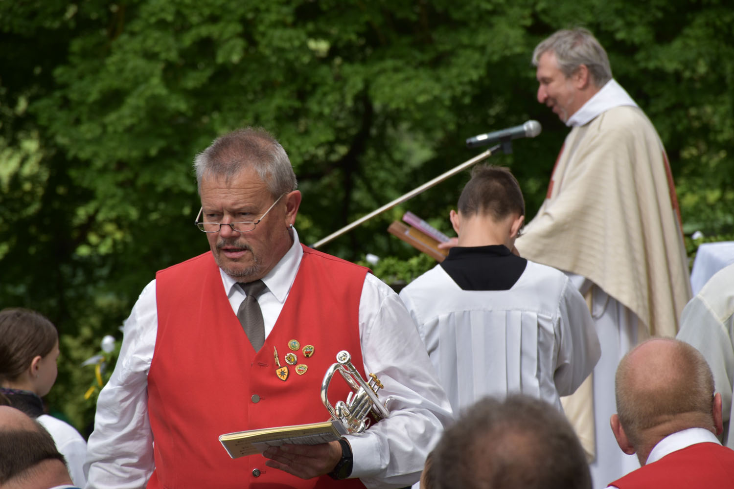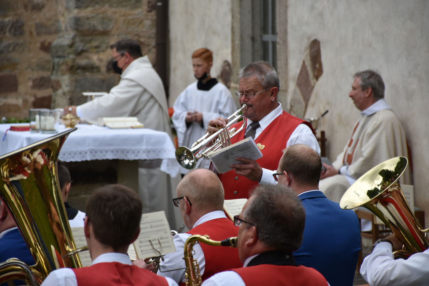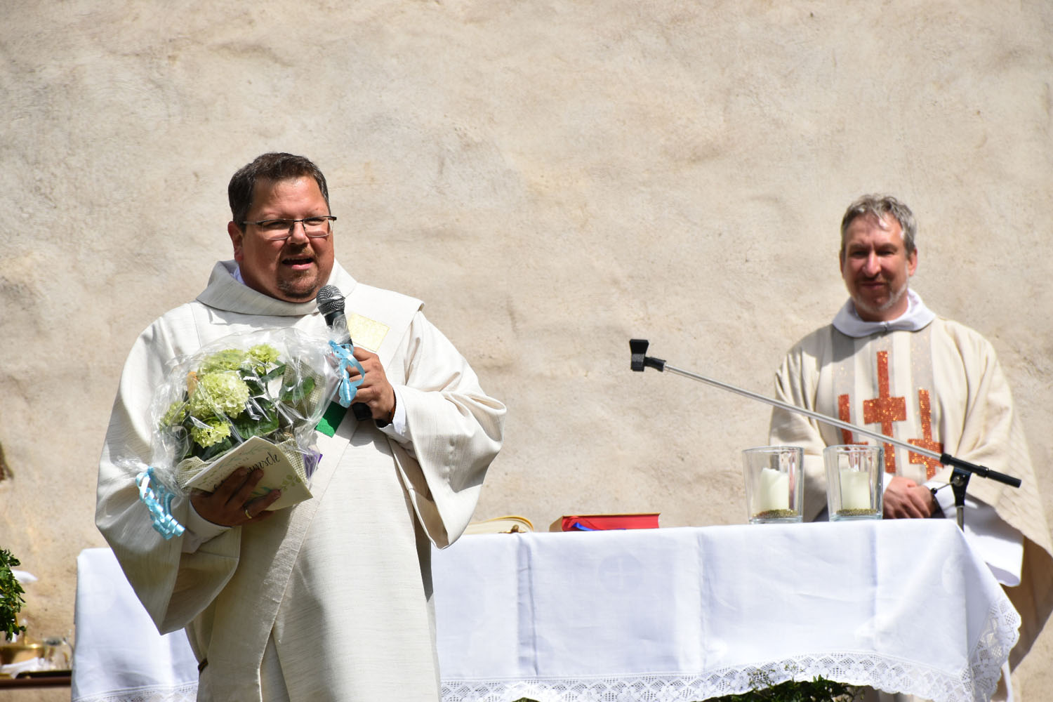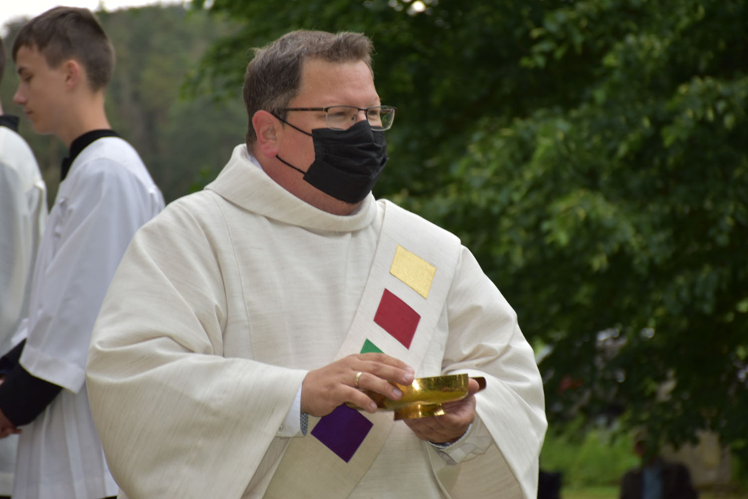 An Christi Himmelfahrt, 26. Mai 2022, führte zum ersten Mal nach der Corona-Unterbrechung die Prozession wieder zur Wittmar Kapelle. Dort warteten bereits viele Besucher, sodass gegen 10 Uhr der Festgottesdienst begann. Zum ersten Mal übernahm dabei Alexander von Rüden die Aufgaben des Diakons in der Heiligen Messe und hielt die Predigt. Im Anschluss an den Gottesdienst gratulierte Bärbel Armbrecht für die Gremien, Pfarrer Martin Fischer für die Gemeinde und der Kindergarten überraschte Alexander von Rüden mit einem Liedvortrag.