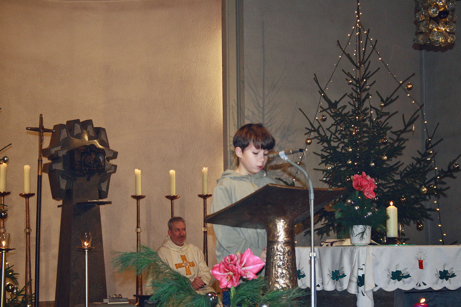 Zahlreiche Kinder mit ihren Eltern, Familien und auch Gemeindemitglieder unserer Kirchengemeinde in der Kirche St. Maria waren dann zur Christmette mit Krippenspiel um 16:00 Uhr gekommen.