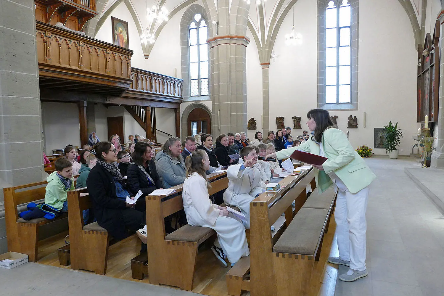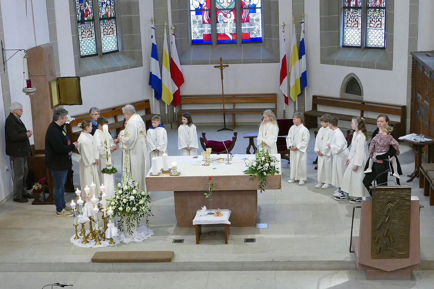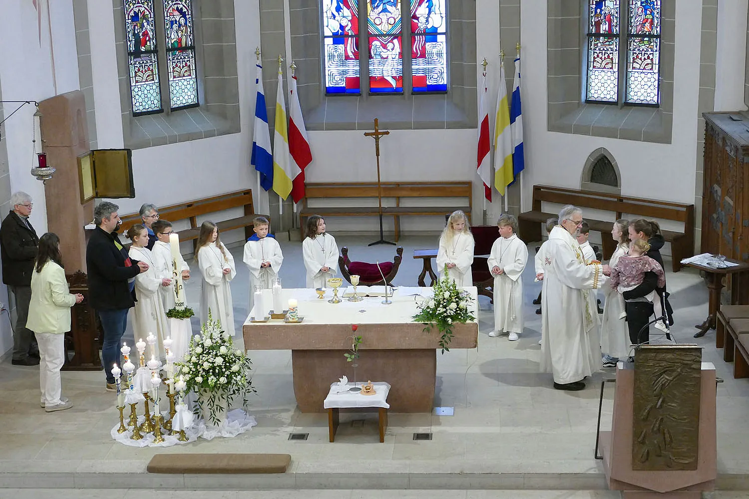 Am Montag, 13. April 2026, trafen sich die Kommunionkinder und deren Familien um 10:00 Uhr zu einem Dankgottesdienst in der Stadtpfarrkirche St. Crescentius.