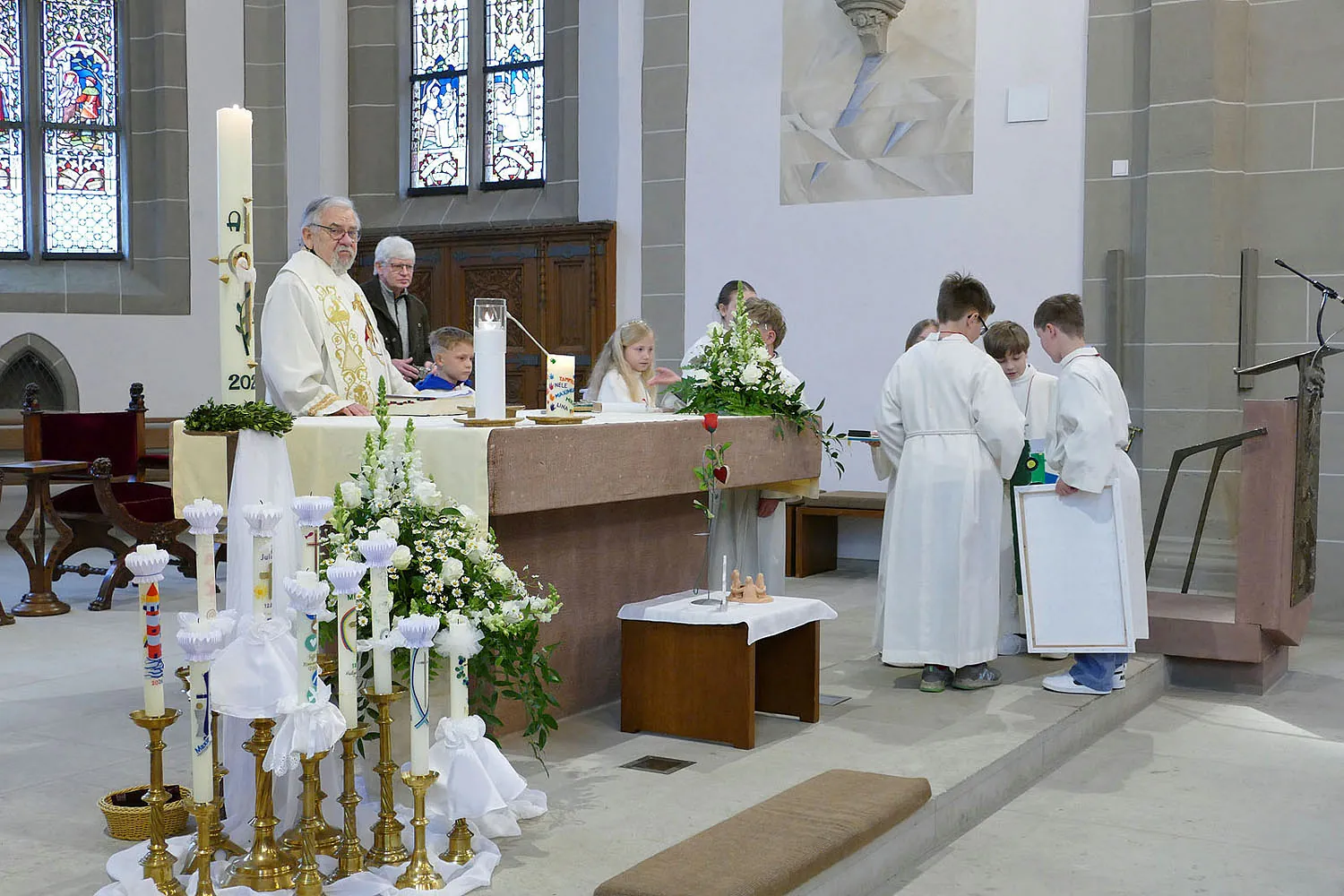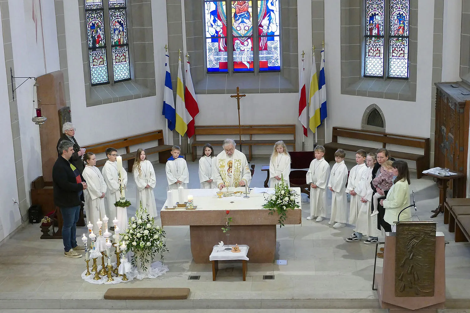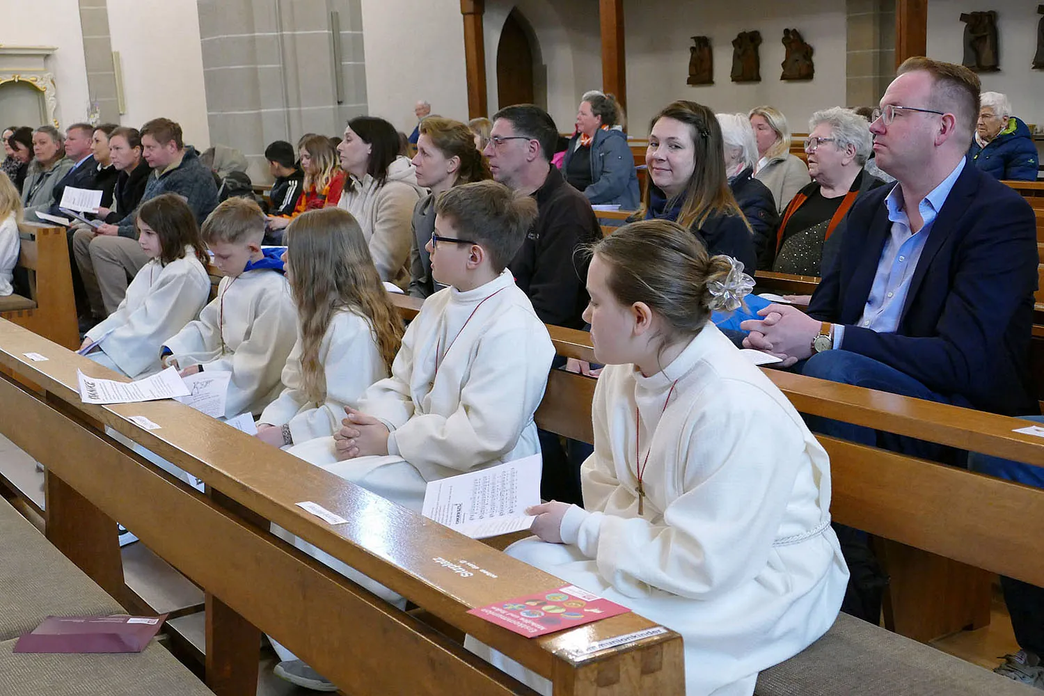 Am Montag, 13. April 2026, trafen sich die Kommunionkinder und deren Familien um 10:00 Uhr zu einem Dankgottesdienst in der Stadtpfarrkirche St. Crescentius.