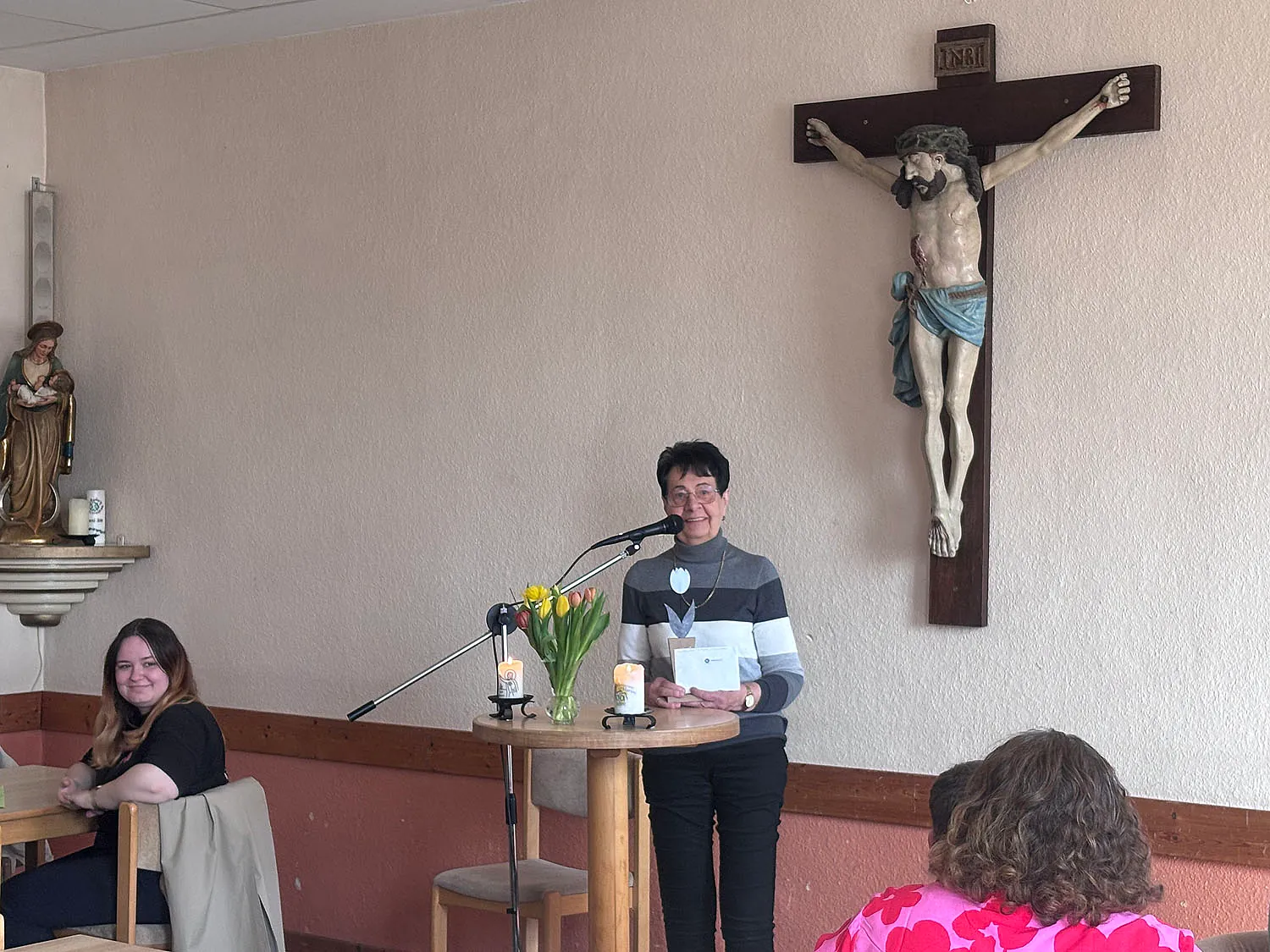 Eva Zahn selbst kam in Ihrem Grußwort auf die Freude Ihrer Arbeit, die Menschen, das Lachen und manchmal auch das Weinen, die Begegnungen und Erfahrungen zu sprechen, welche die Arbeit als Pfarrsekretärin einzigartig und besonders machen.