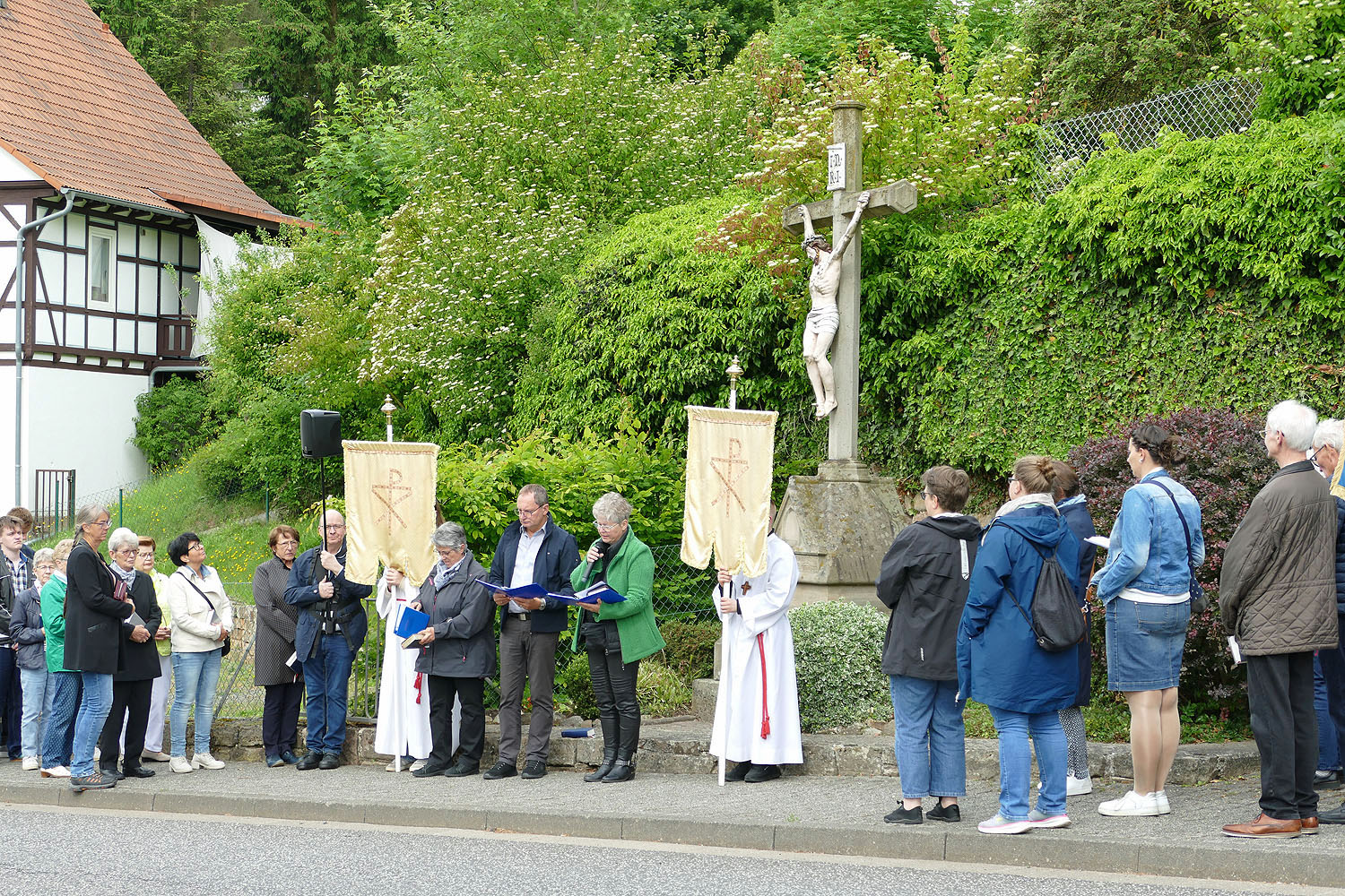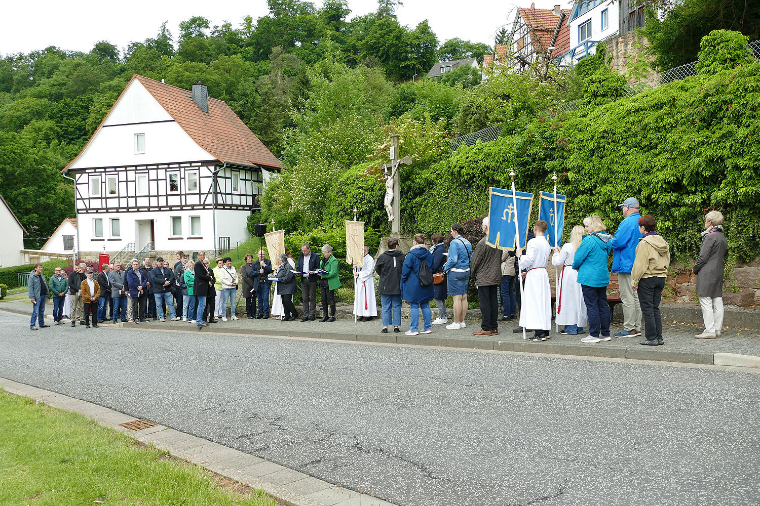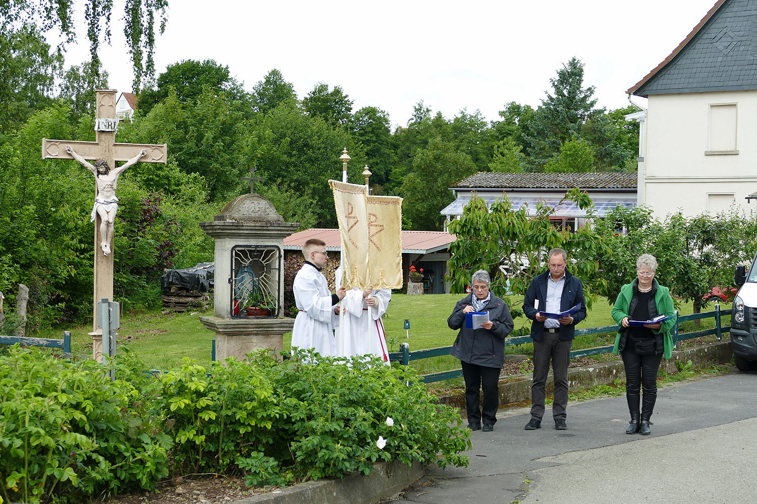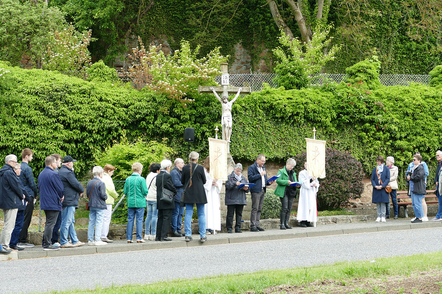 Die Gebete und Lesungen an den einzelnen Stationen der Prozession wurden von Frau Rössler, Frau Wiederhold und Herrn Herchenröder vorgetragen. Dafür ein herzliches Dankeschön von Stadtpfarrer Kowal.