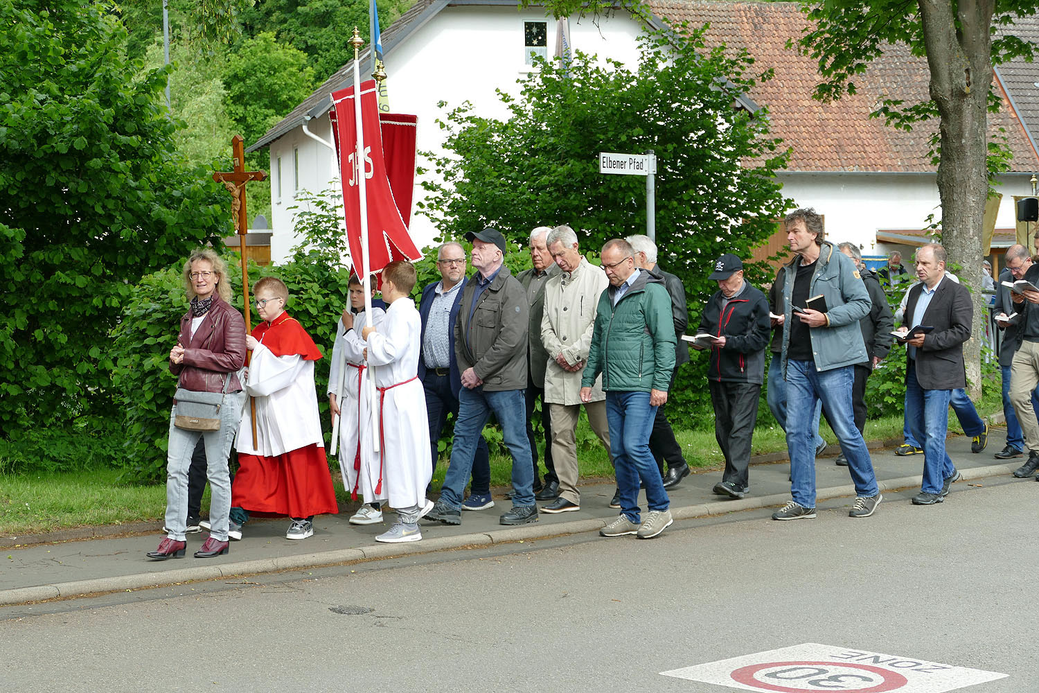 Sie führte von der Stadtpfarrkirche die Kirchstraße hinab zum Alten Hagen und die Graf-Volkwin-Straße wieder hinauf. Dort überquerte man die Burgstraße zur Dielenhennstraße und es ging dann zum Kreuz in der Fritzlarer Straße zur ersten Bittstation. Von dort ging es weiter zum Haus St. Josef, wo an der Josefs Figur die zweite Bittstation war. Man ging am Kindergarten vorbei zum Mühlenweg. Diesen ging man dann bis zur dritten Bittstation in der Bahnhofstraße an der Elbebrücke. Schließlich führte die Prozession ein kleines Stück durch die Untere Straße, den Alten Hagen und wieder die Kirchstraße hinauf über den Marktplatz zur Stadtpfarrkirche.