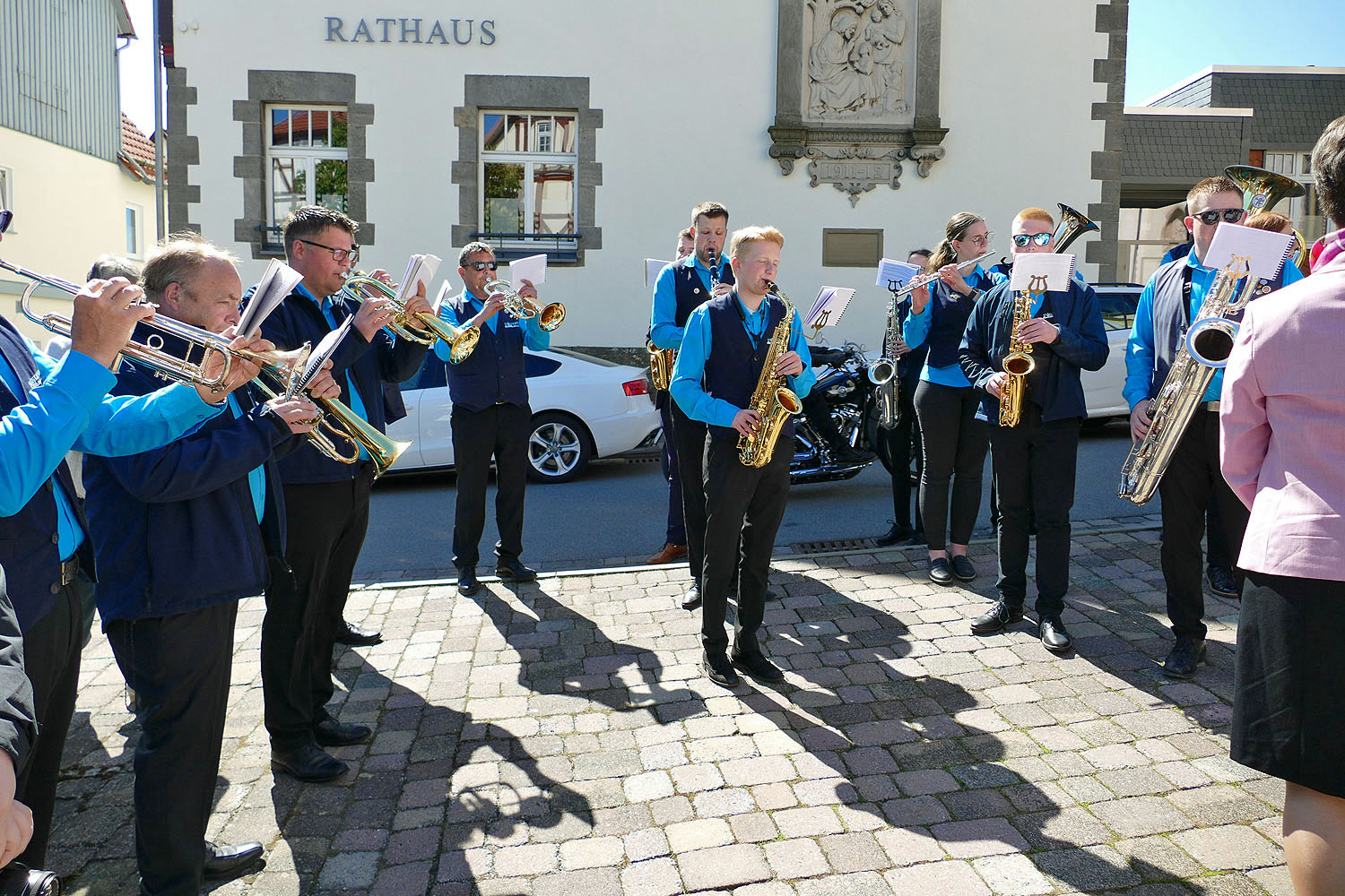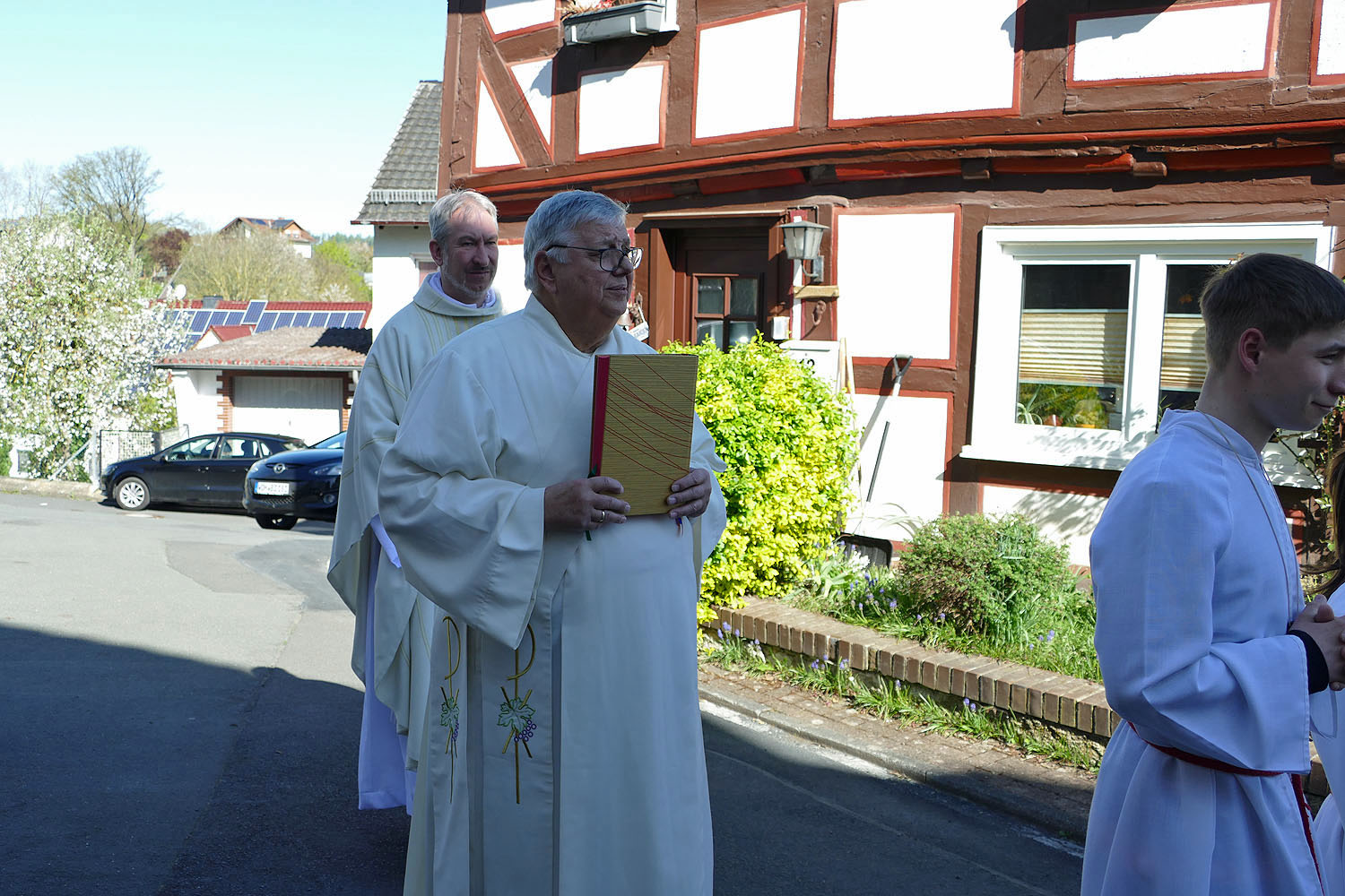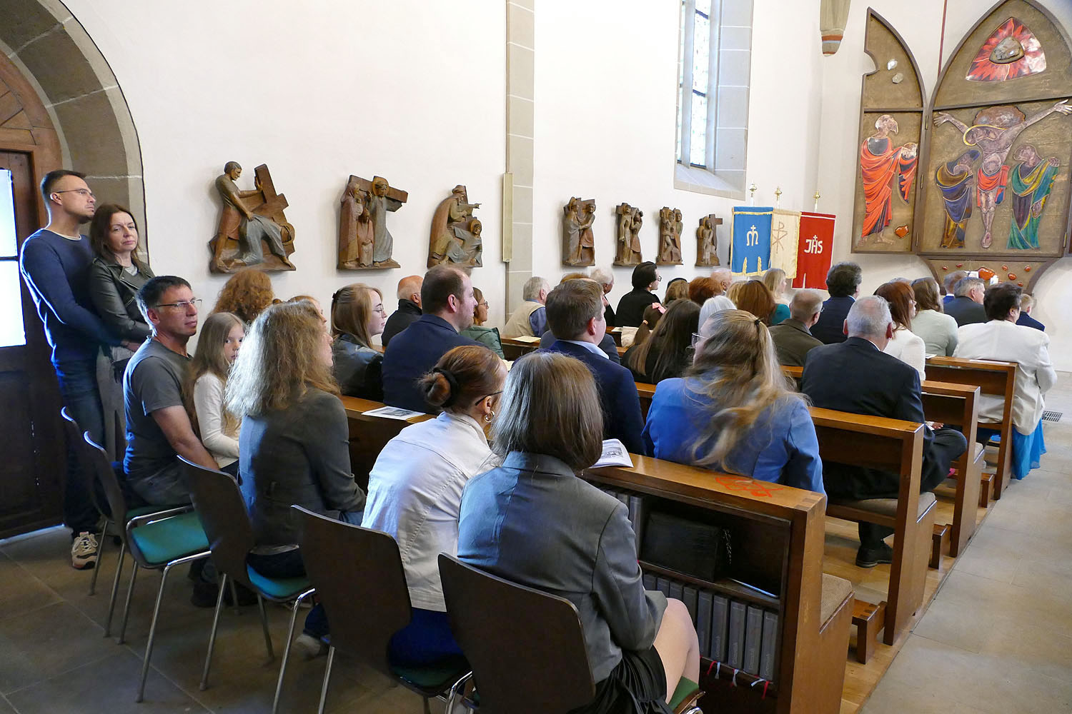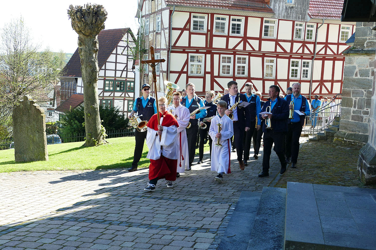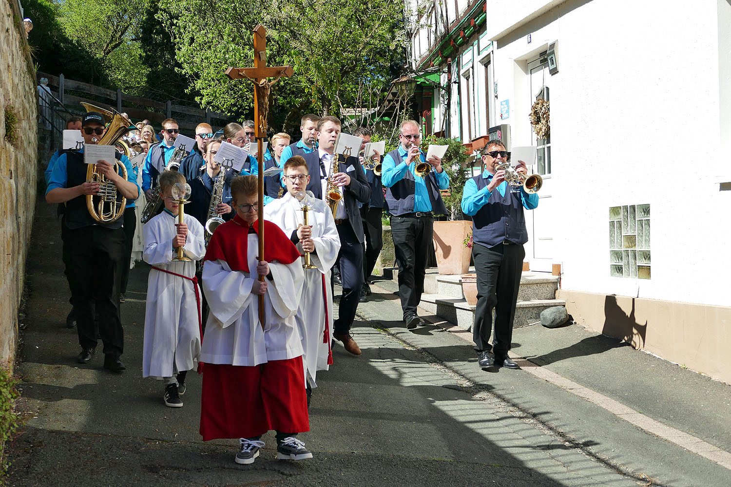 Nachdem die Kommunionkinder im Gemeindezentrum Pater Bonifatius Dux Haus sich für diesen Tag vorbereitet hatten und ihnen ihre Kreuze übergeben wurden, hat sie Pfarrer Fischer mit den Messdienern und der Naumburger Stadtkapelle abgeholt und zogen feierlich in St. Crescentius ein.