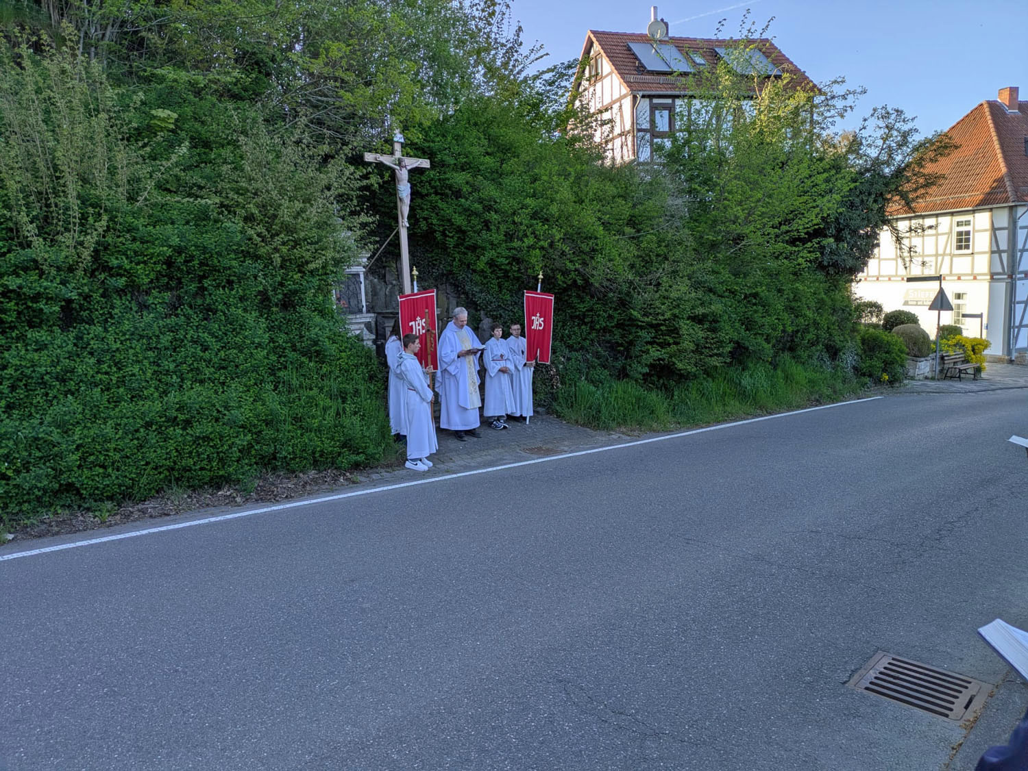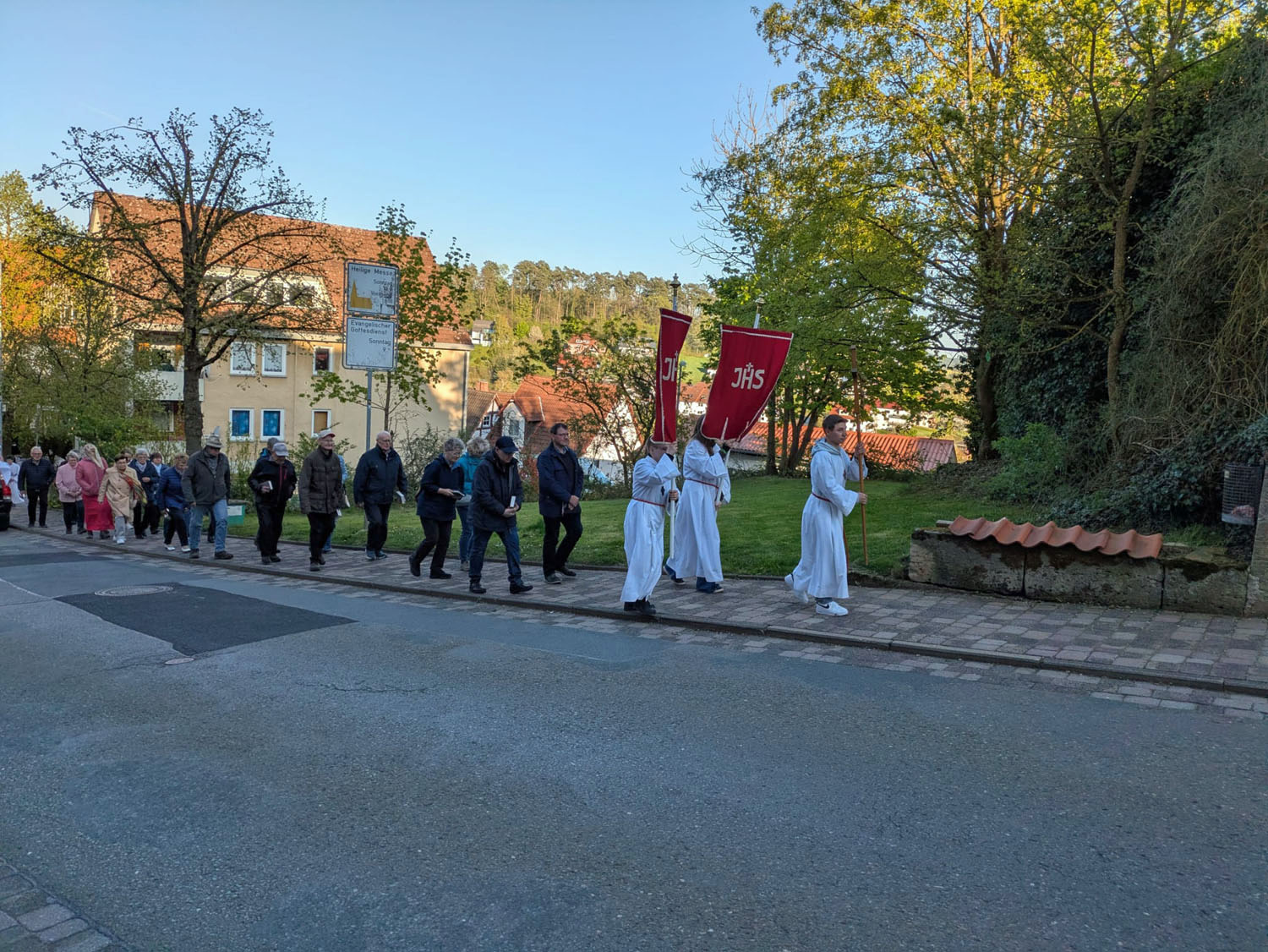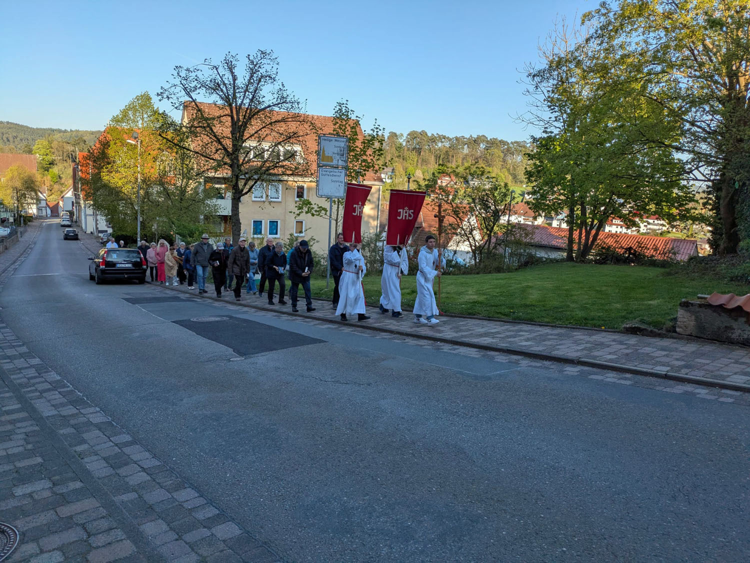 Nach der Heiligen Messe, die von Pfarrer Martin Fischer zelebriert der wurde, zog man in einer Prozession zum Kreuz in der Netzer Straße.