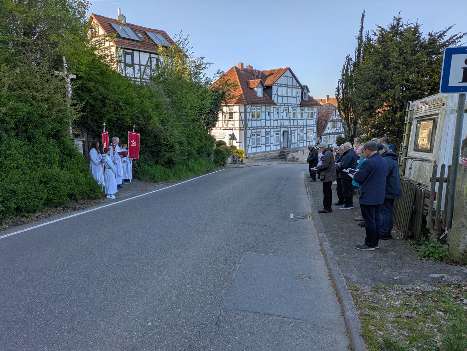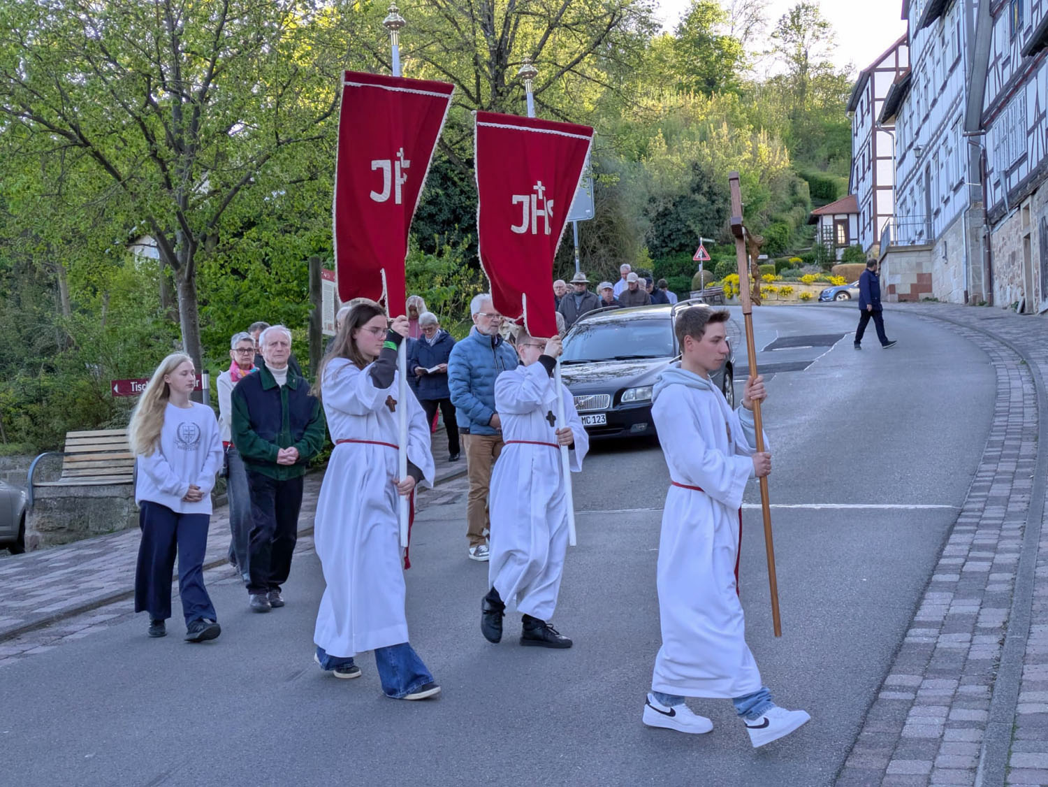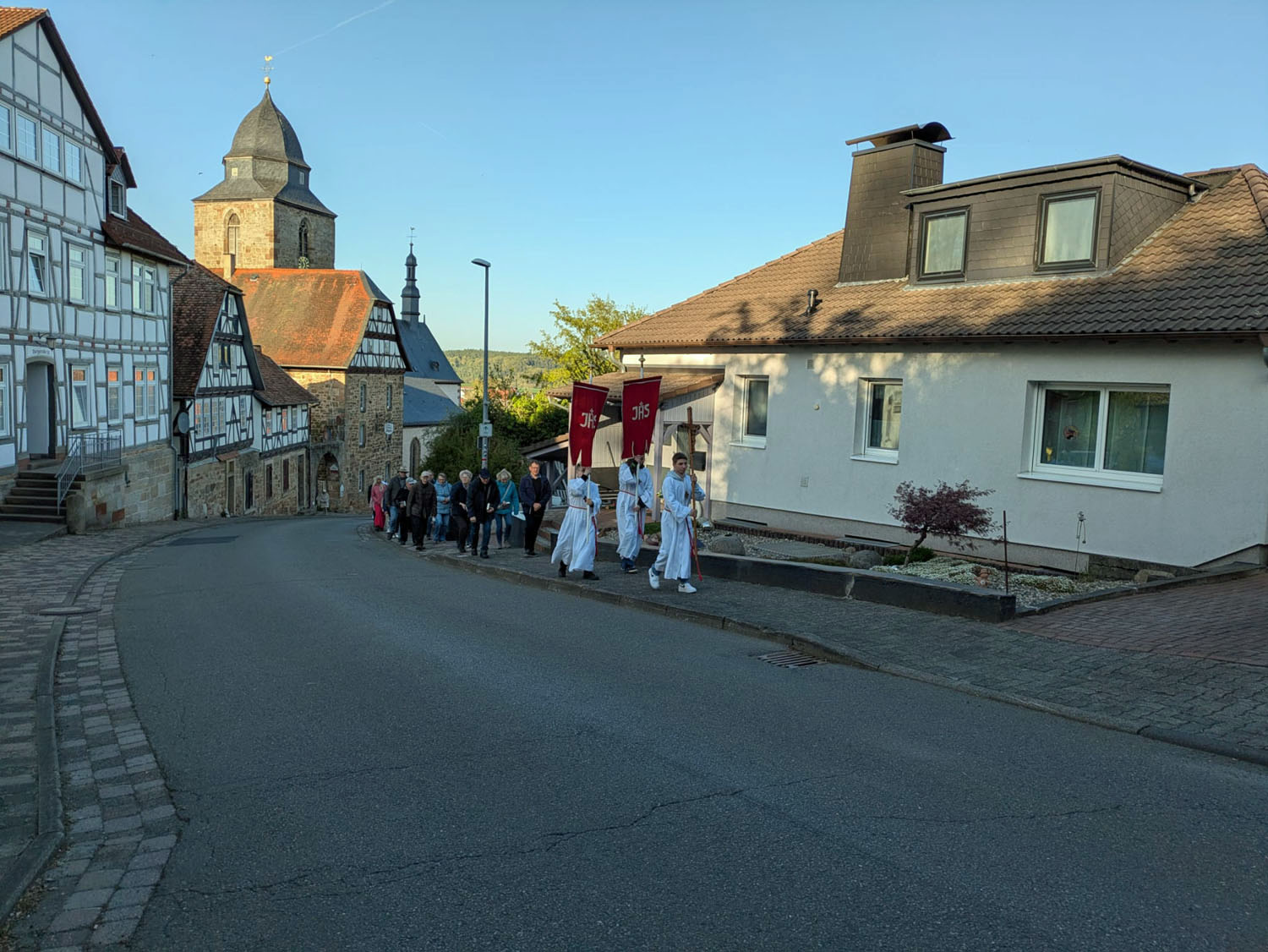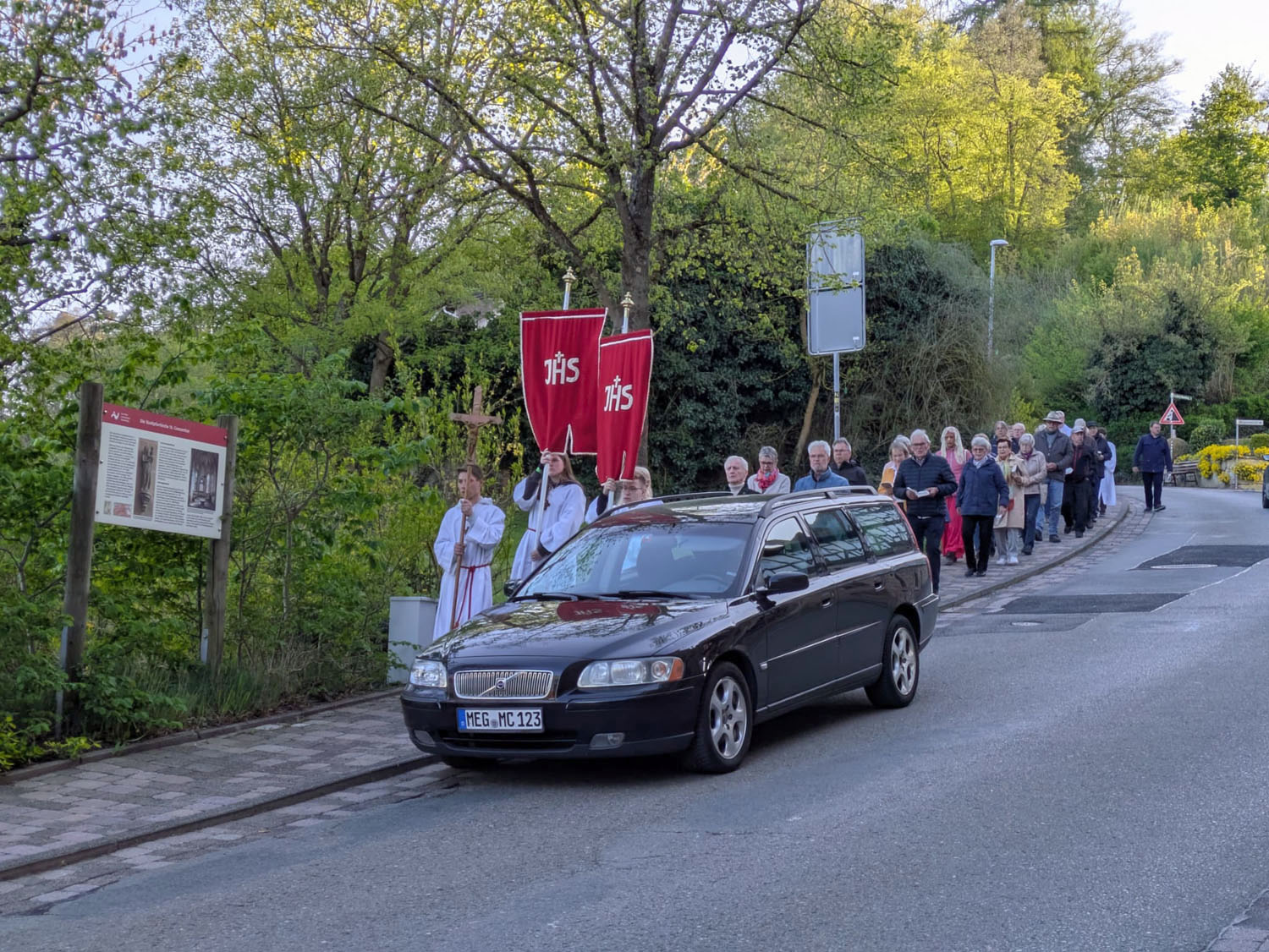 Nach der Heiligen Messe, die von Pfarrer Martin Fischer zelebriert der wurde, zog man in einer Prozession zum Kreuz in der Netzer Straße.