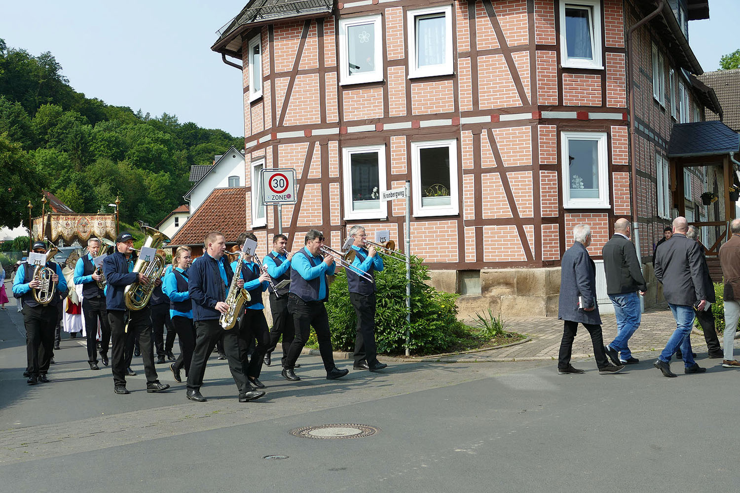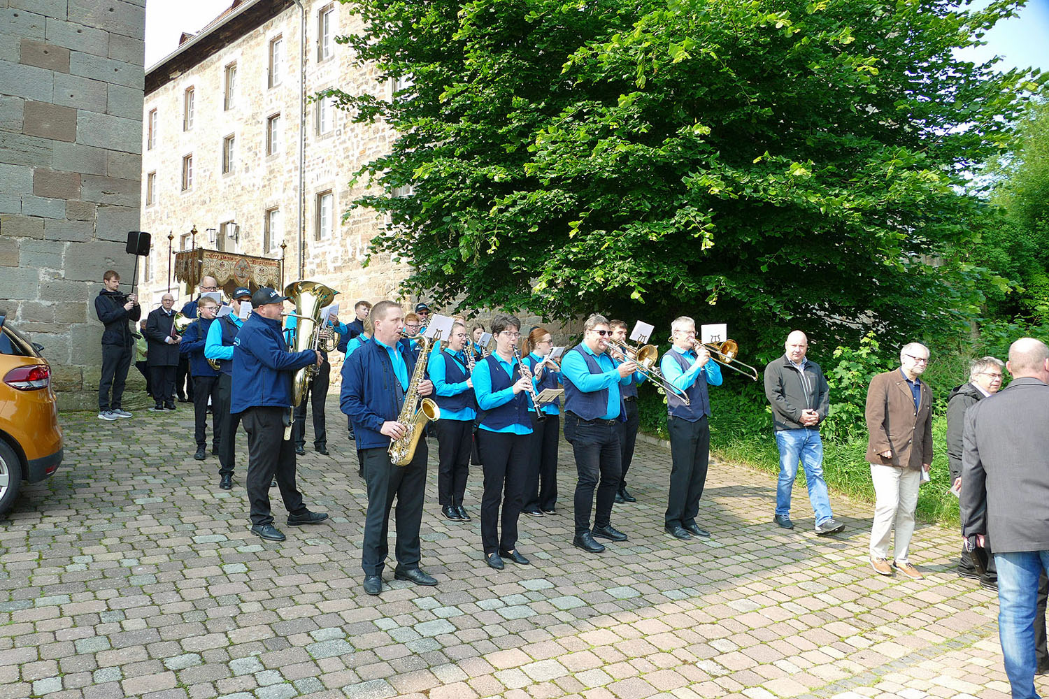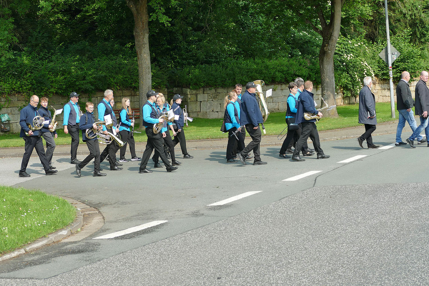 Die Naumburger Stadtkapelle mit ihrem Jugendorchester begleitete die Pfingstprozession musikalisch.