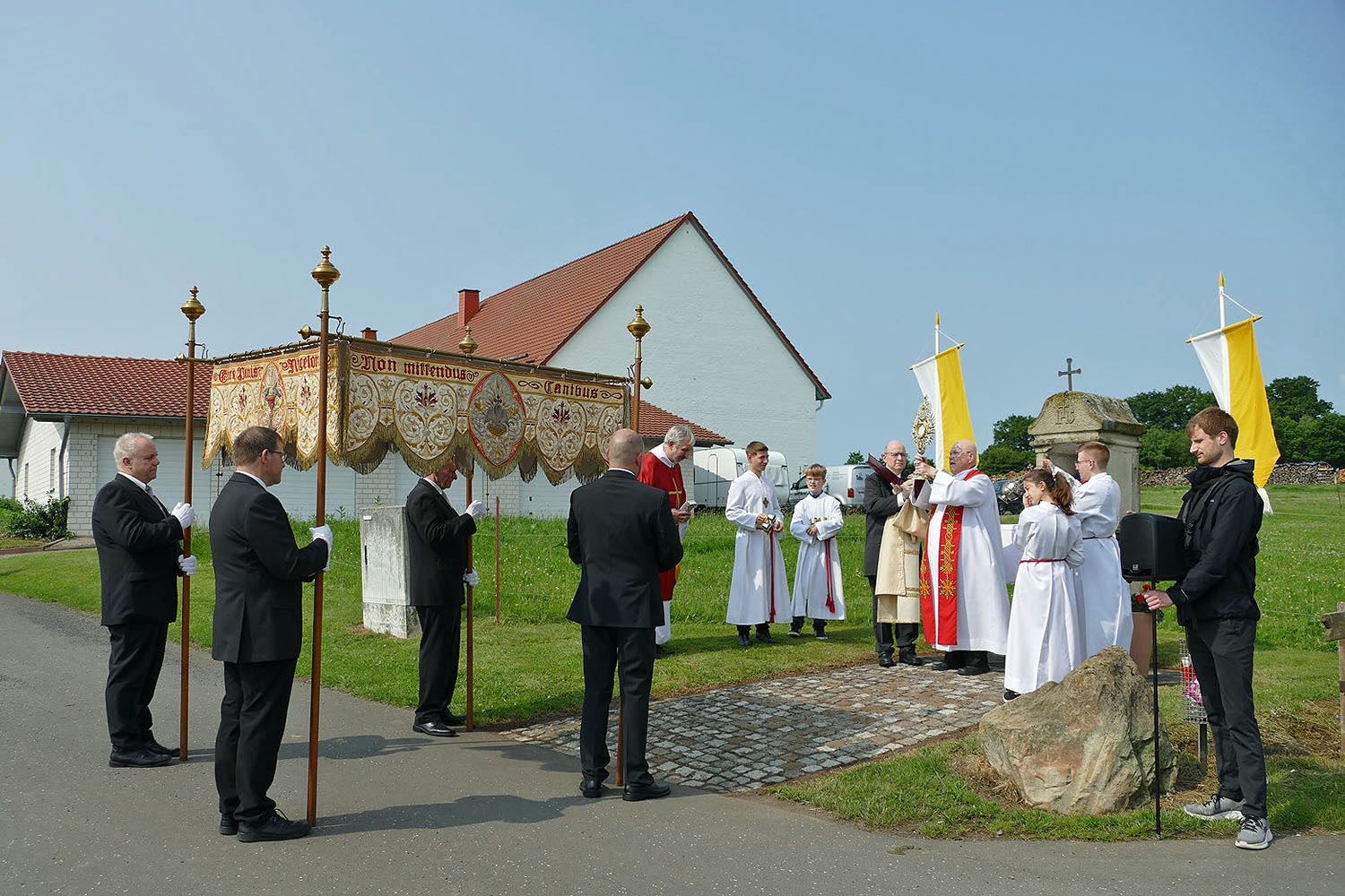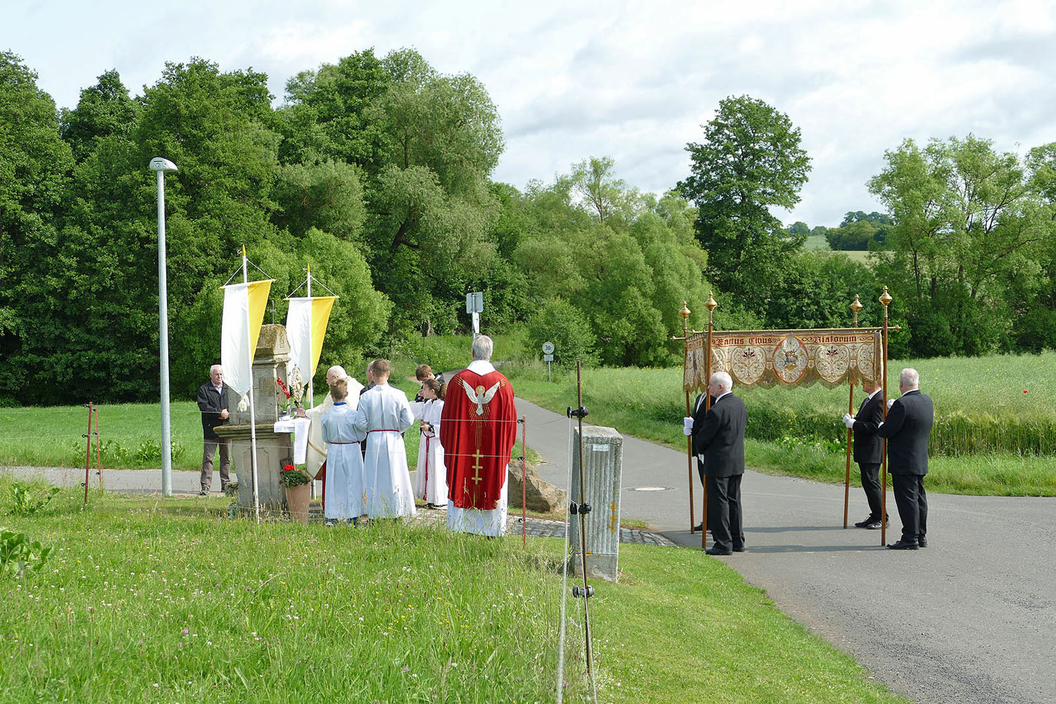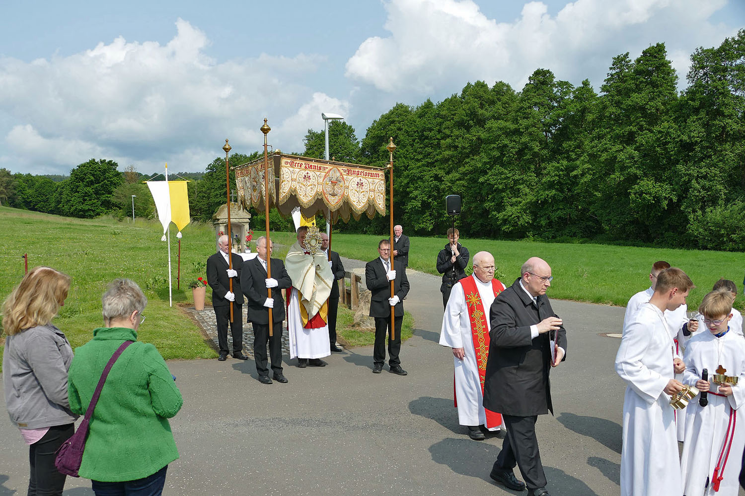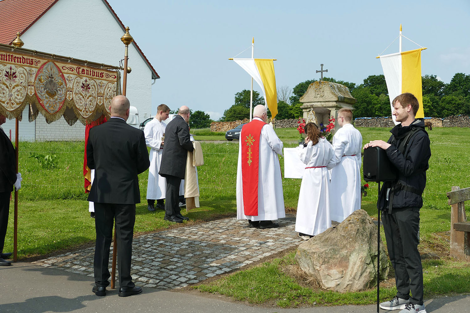 Pfarrer Fischer bedankt sich herzlich bei der Naumburger Stadtkapelle und den Gemeindemitgliedern, die die Altäre für die Prozession geschmückt und aufgestellt hatten.