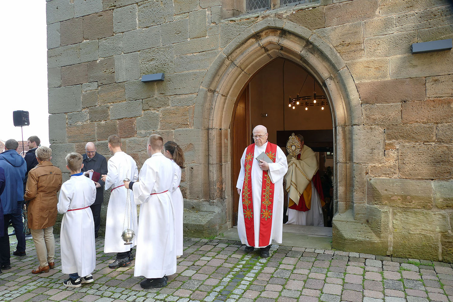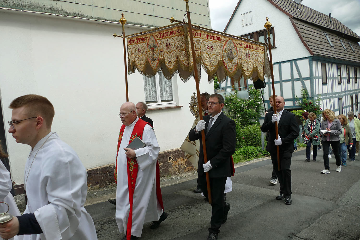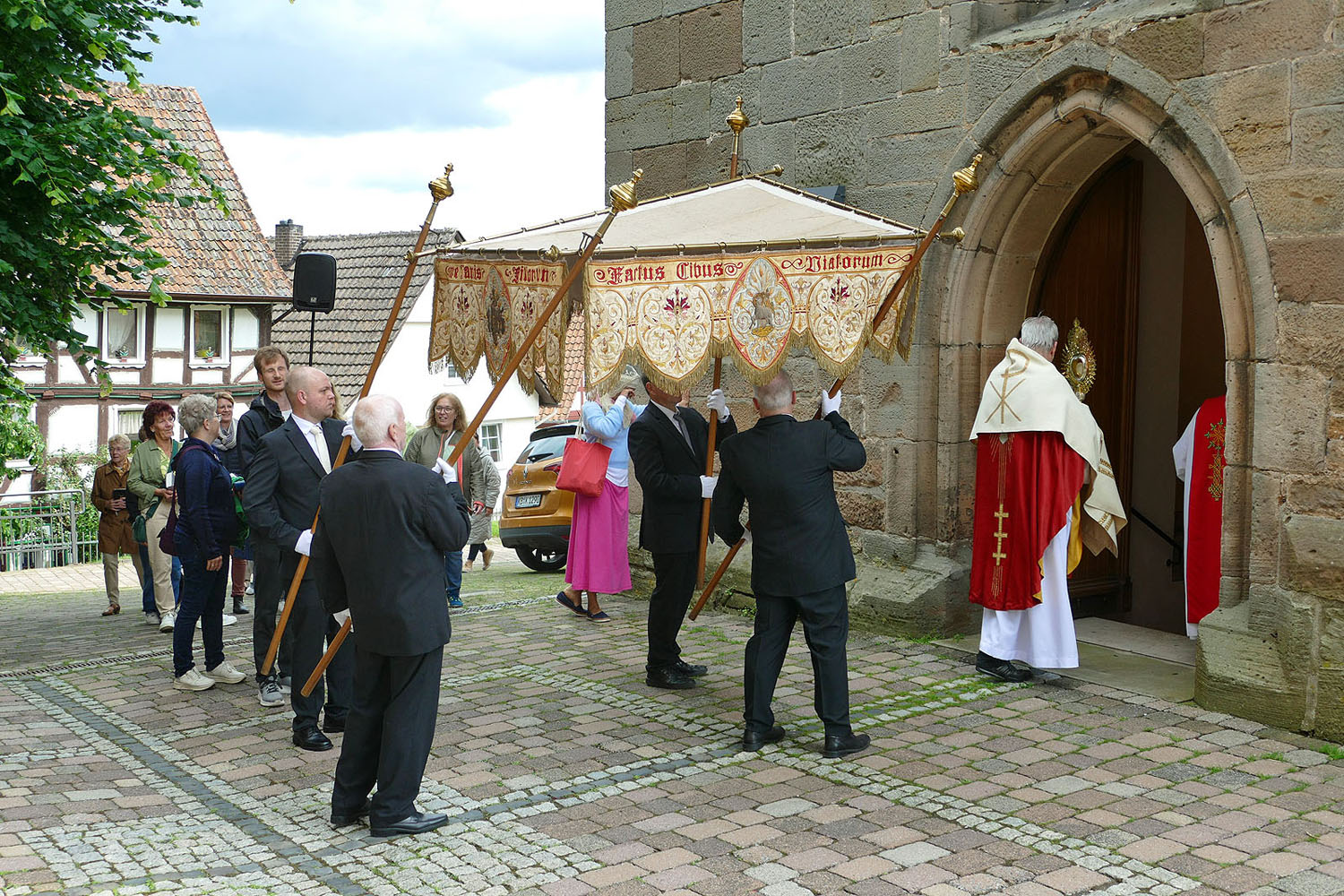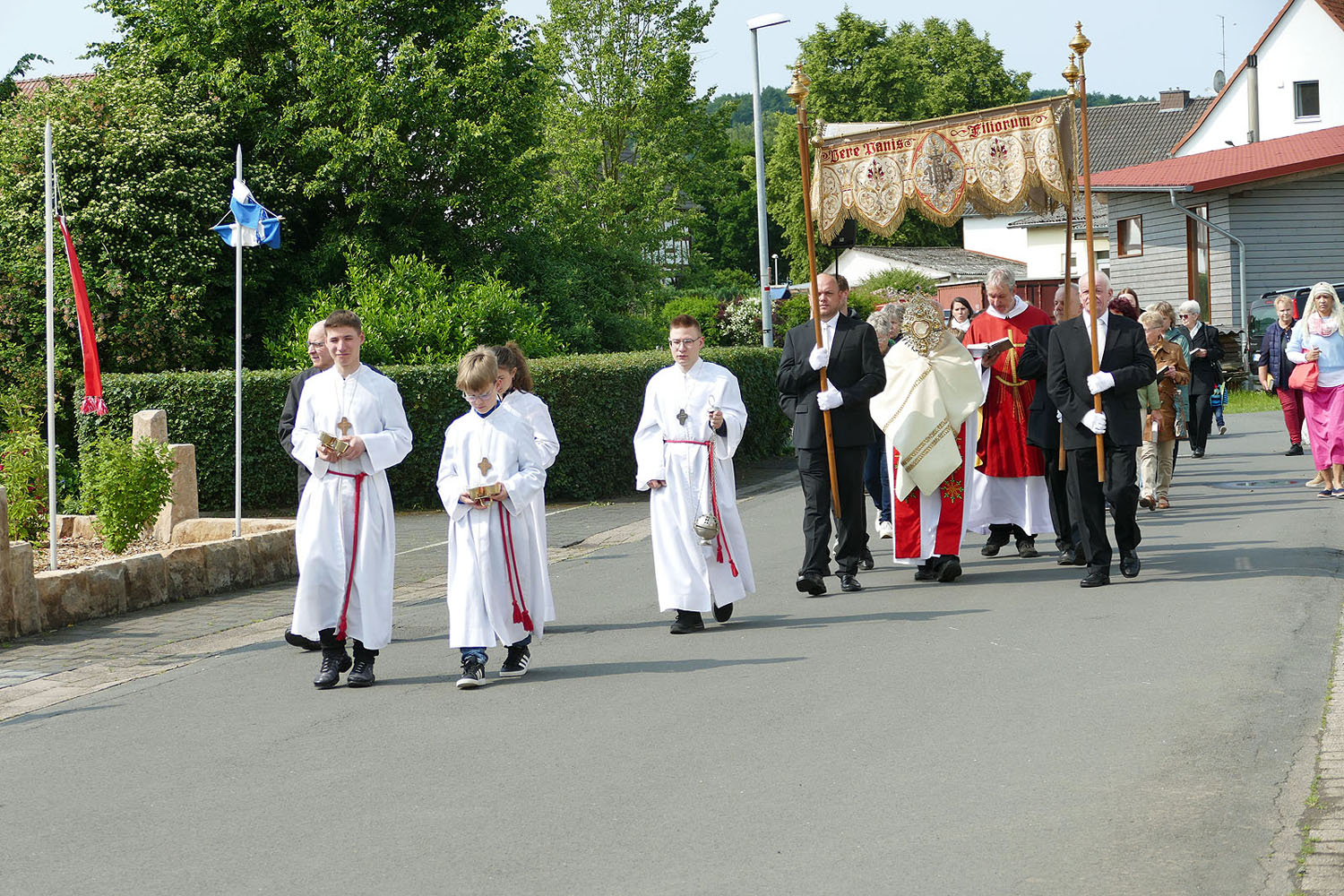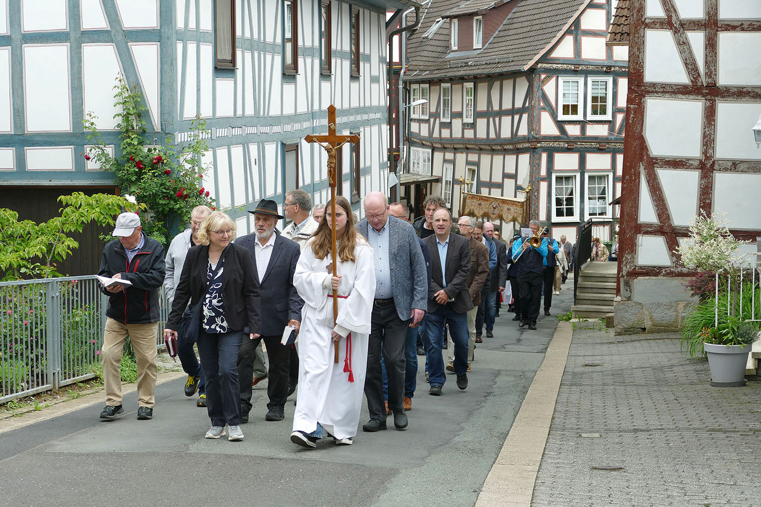 Pfarrer Fischer bedankt sich herzlich bei der Naumburger Stadtkapelle und den Gemeindemitgliedern, die die Altäre für die Prozession geschmückt und aufgestellt hatten.