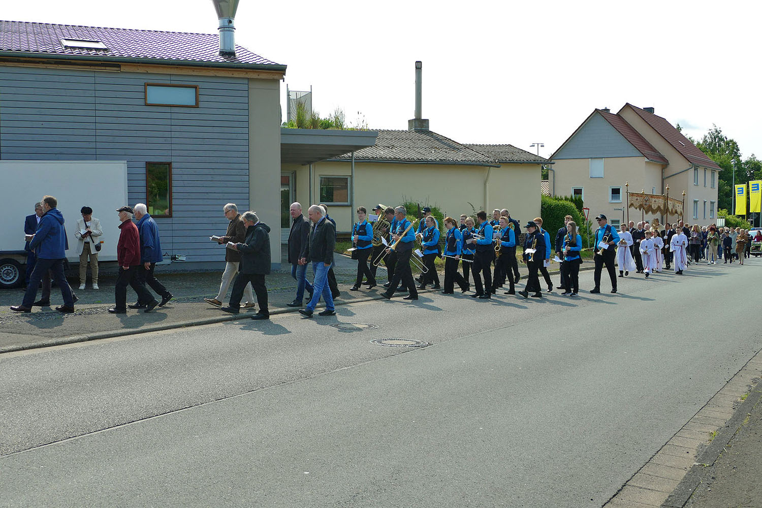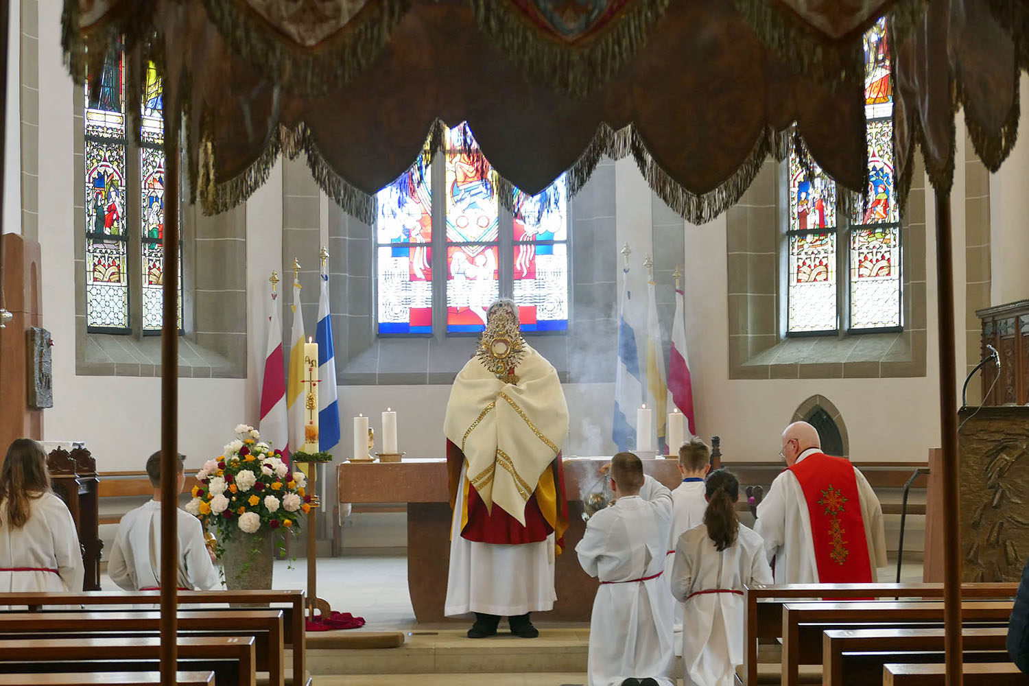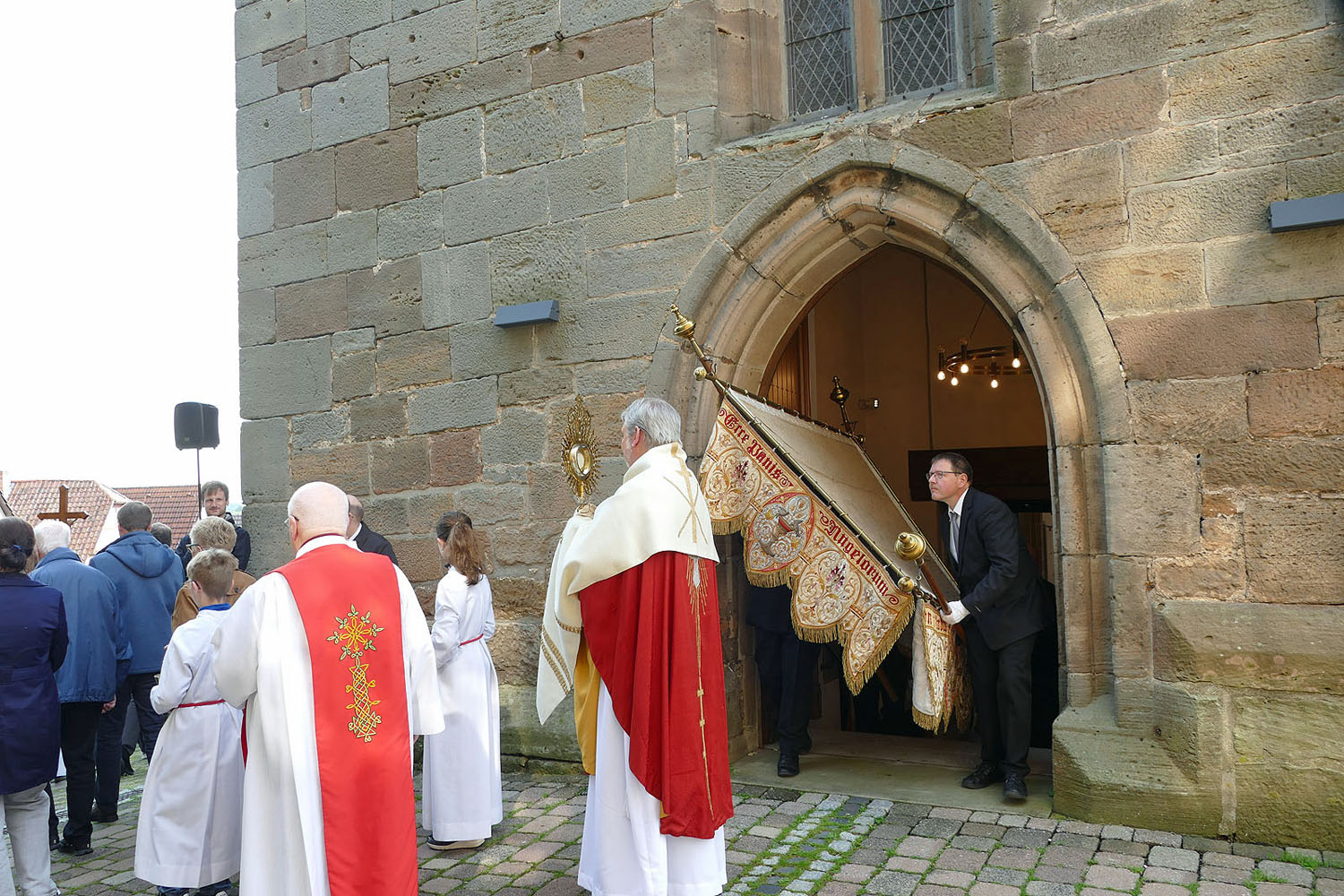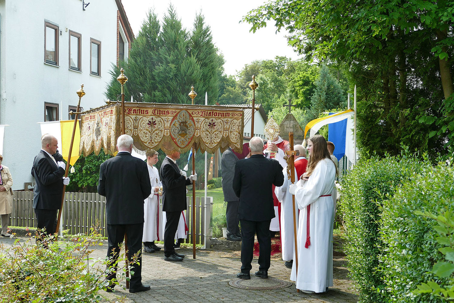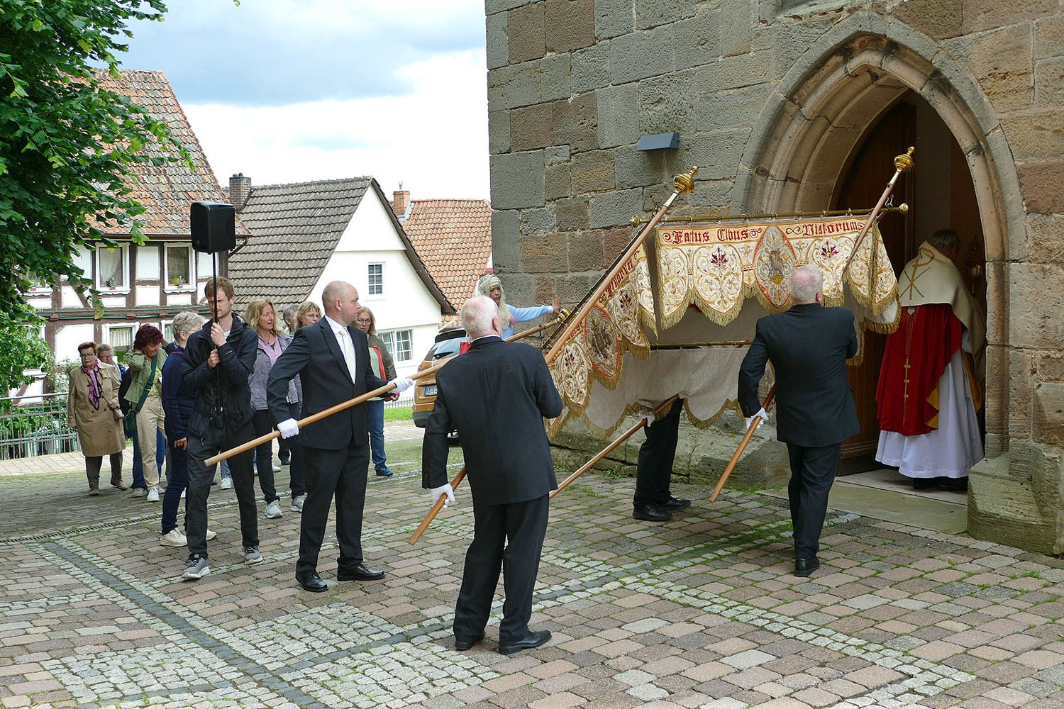 Pfarrer Fischer bedankt sich herzlich bei der Naumburger Stadtkapelle und den Gemeindemitgliedern, die die Altäre für die Prozession geschmückt und aufgestellt hatten.