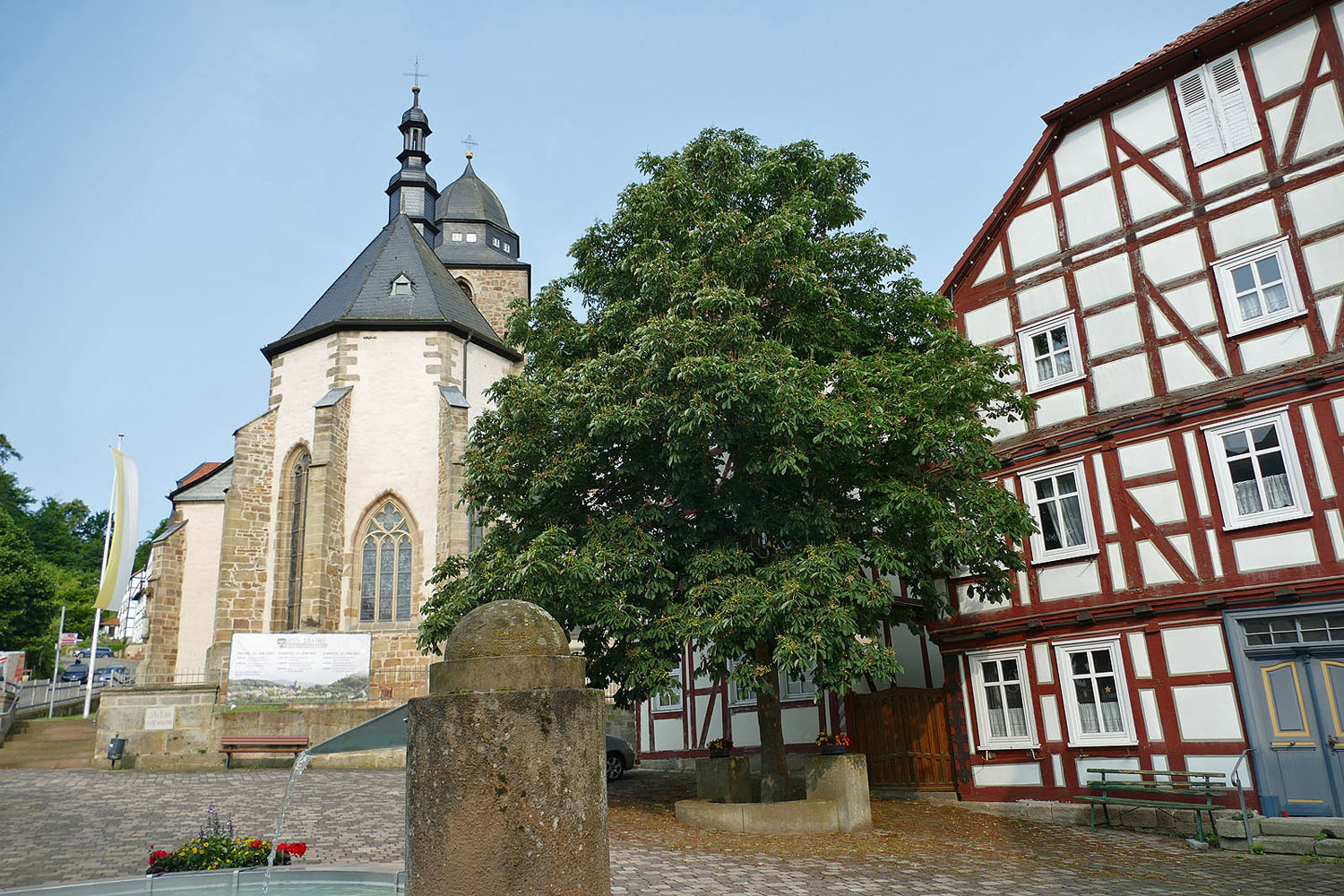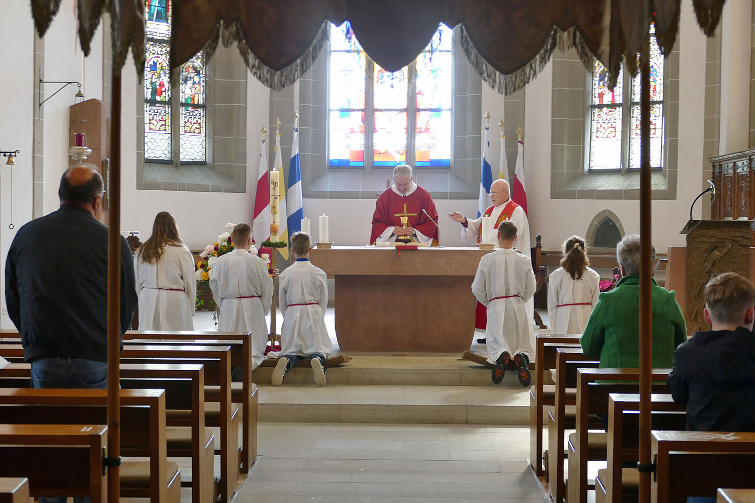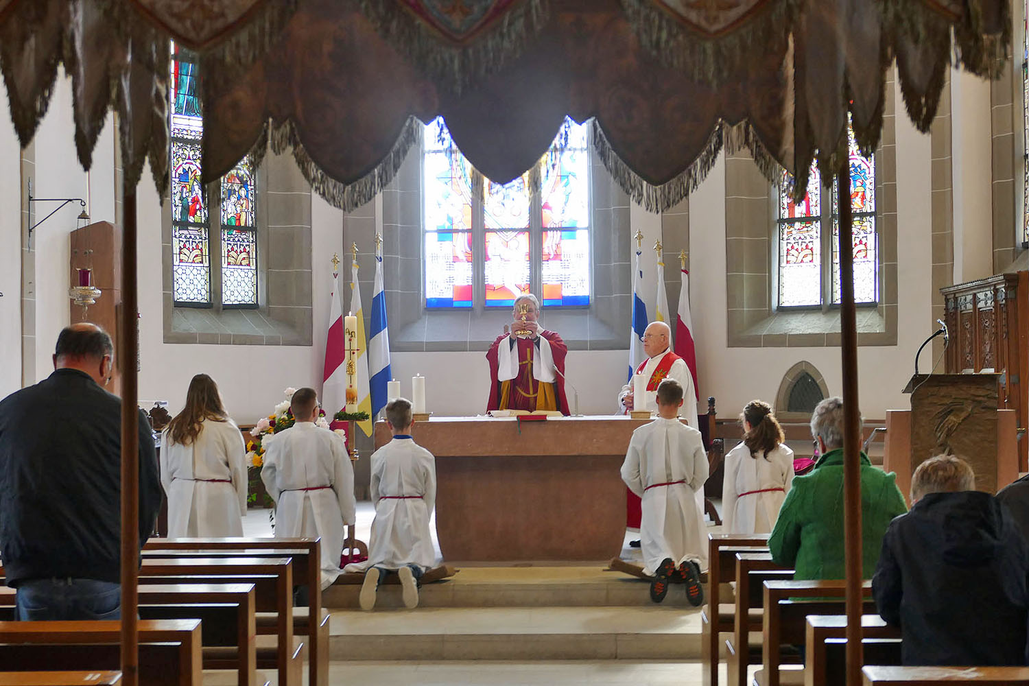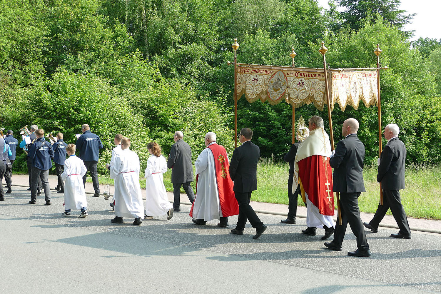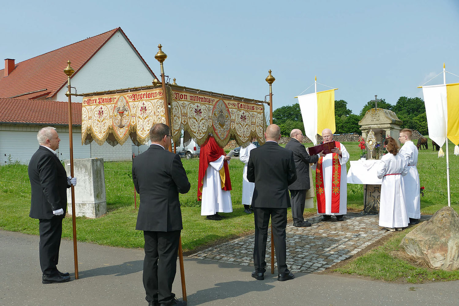 Pfarrer Fischer bedankt sich herzlich bei der Naumburger Stadtkapelle und den Gemeindemitgliedern, die die Altäre für die Prozession geschmückt und aufgestellt hatten.