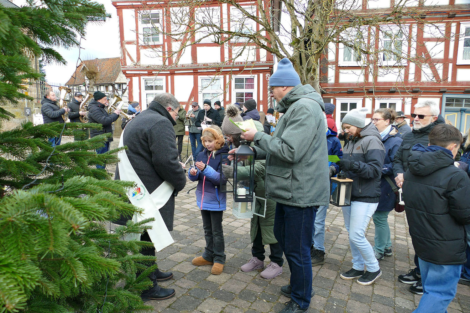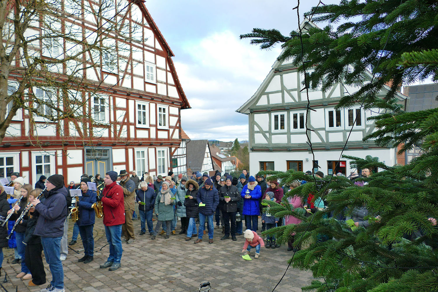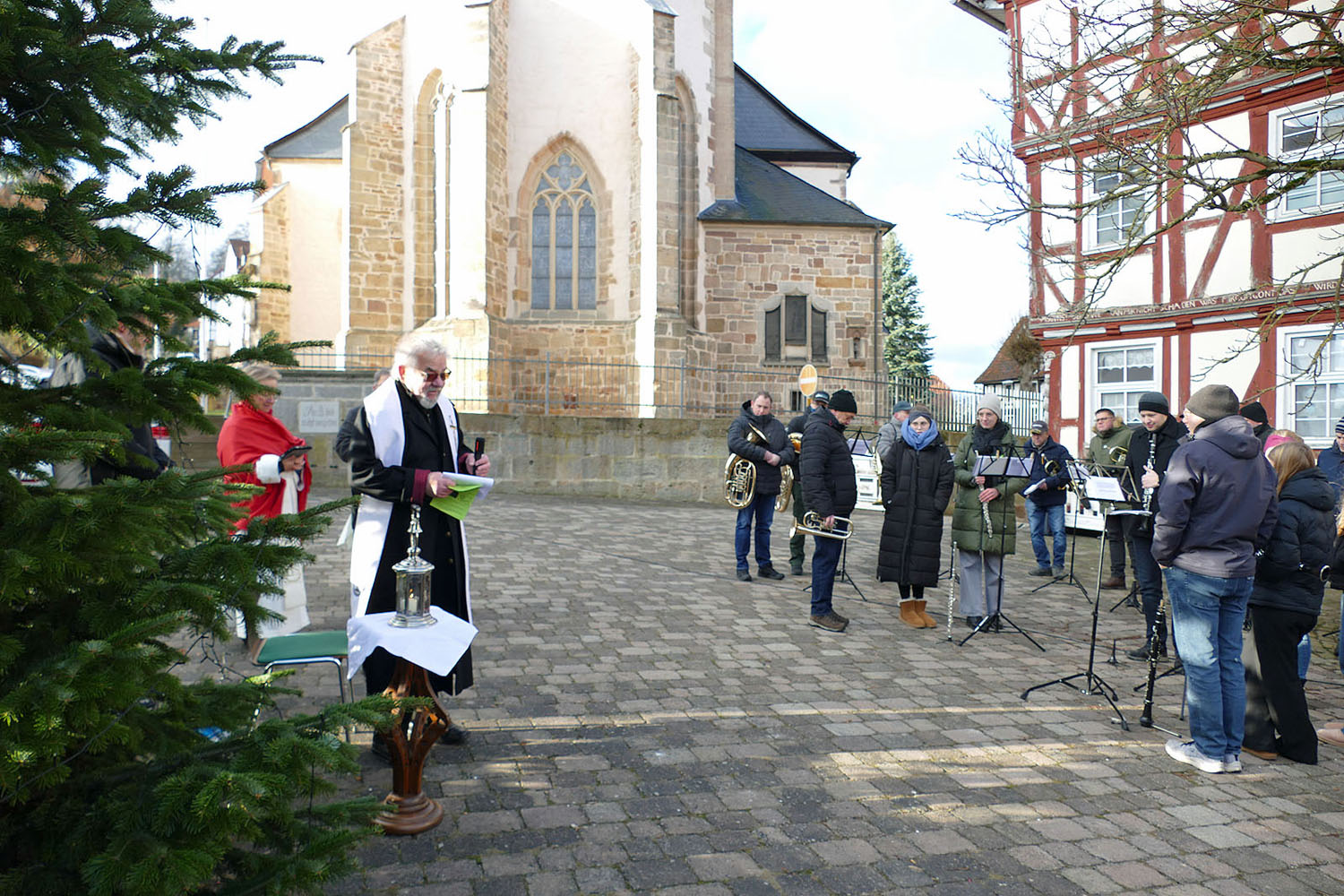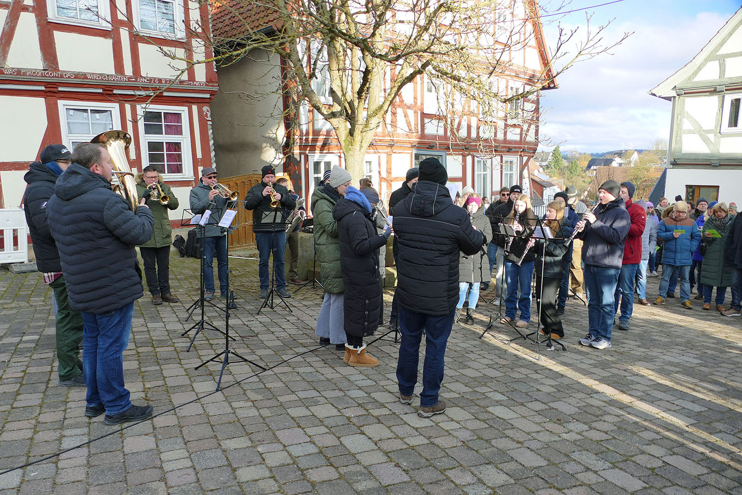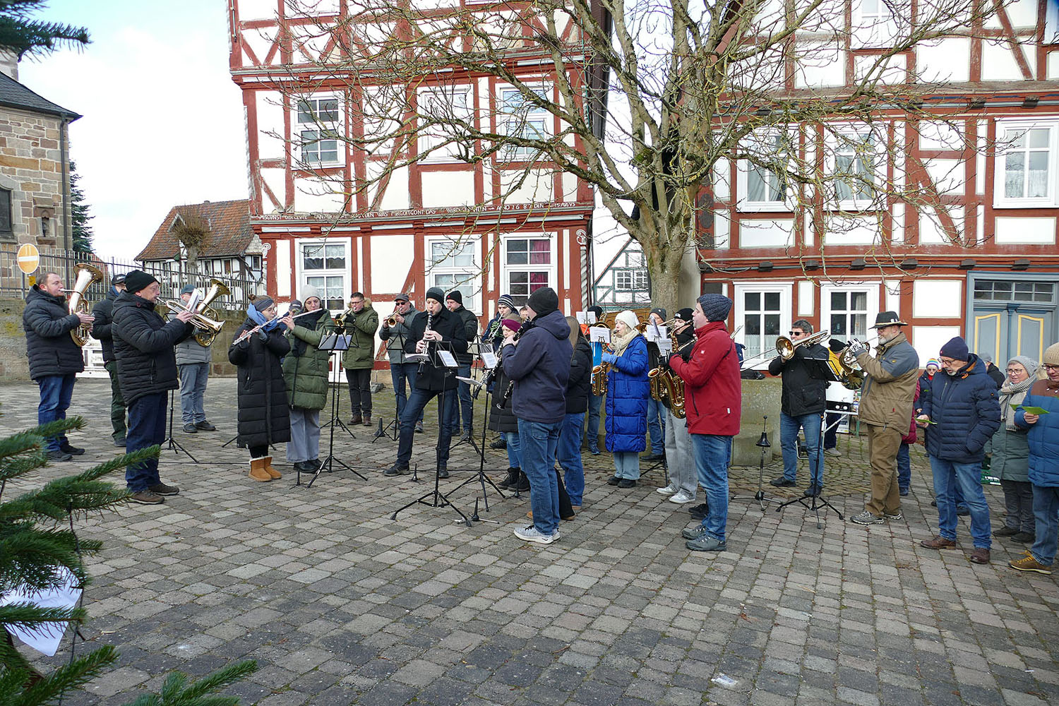 Das gemeinsame Singen von Weihnachtsliedern wurde von der Naumburger Stadtkapelle begleitet.
