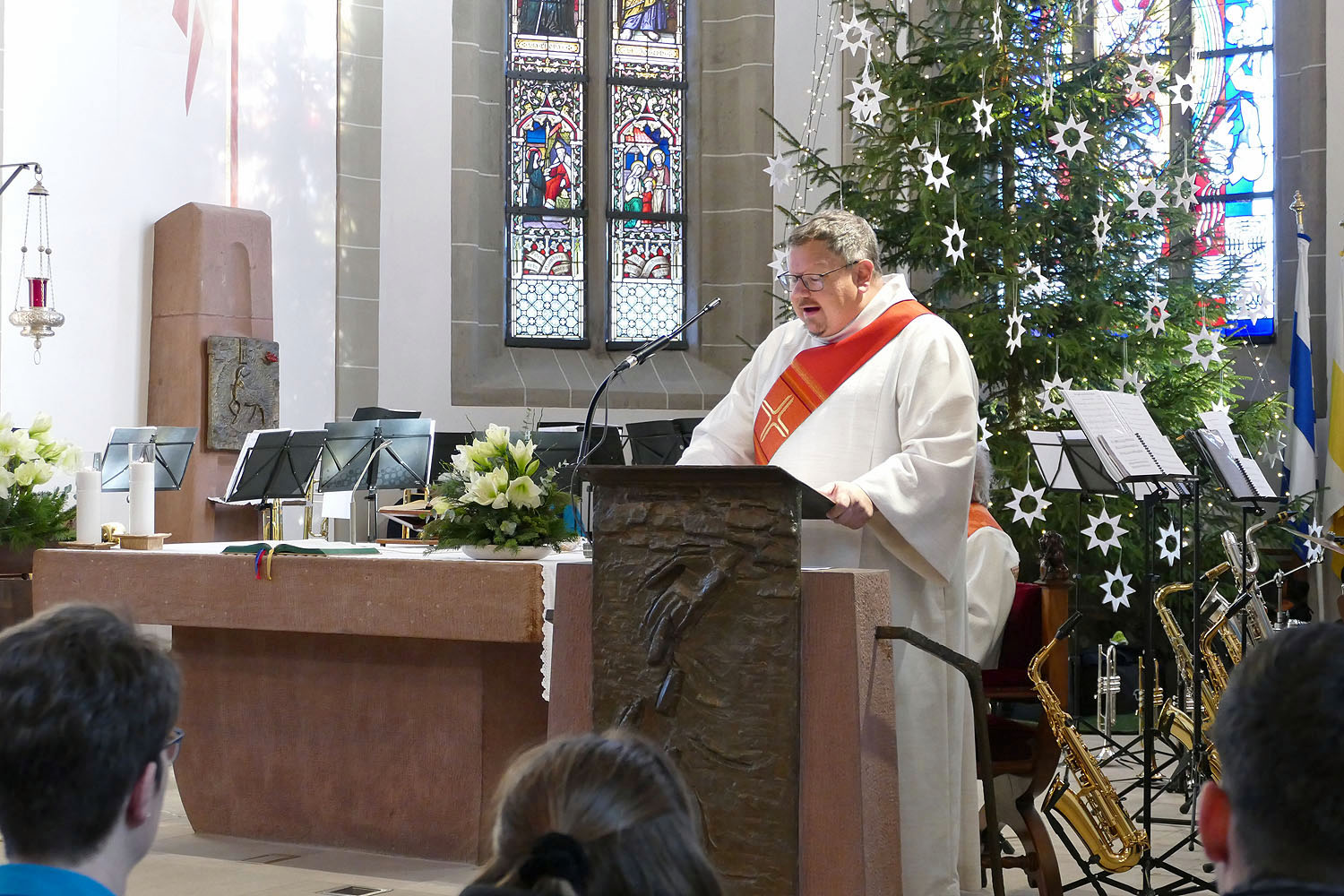 Wie schon zur Tradition geworden, und hoffentlich auch weiterhin bleibt, begleitete die Naumburger Stadtkapelle unter ihrem Dirigenten Kai-MIchael Schirmer die Heilige Messe. Neben "An dich glaub ich, auf dich hoff ich" und anderen kirchlichen weihnachtlichen Liedern spielten sie auch unser bekanntes und geliebtes „Was nützet mir die Welt". Intonisiert wurden beide Lieder von ihrem ehemaligen Dirigenten Heinz Roth.